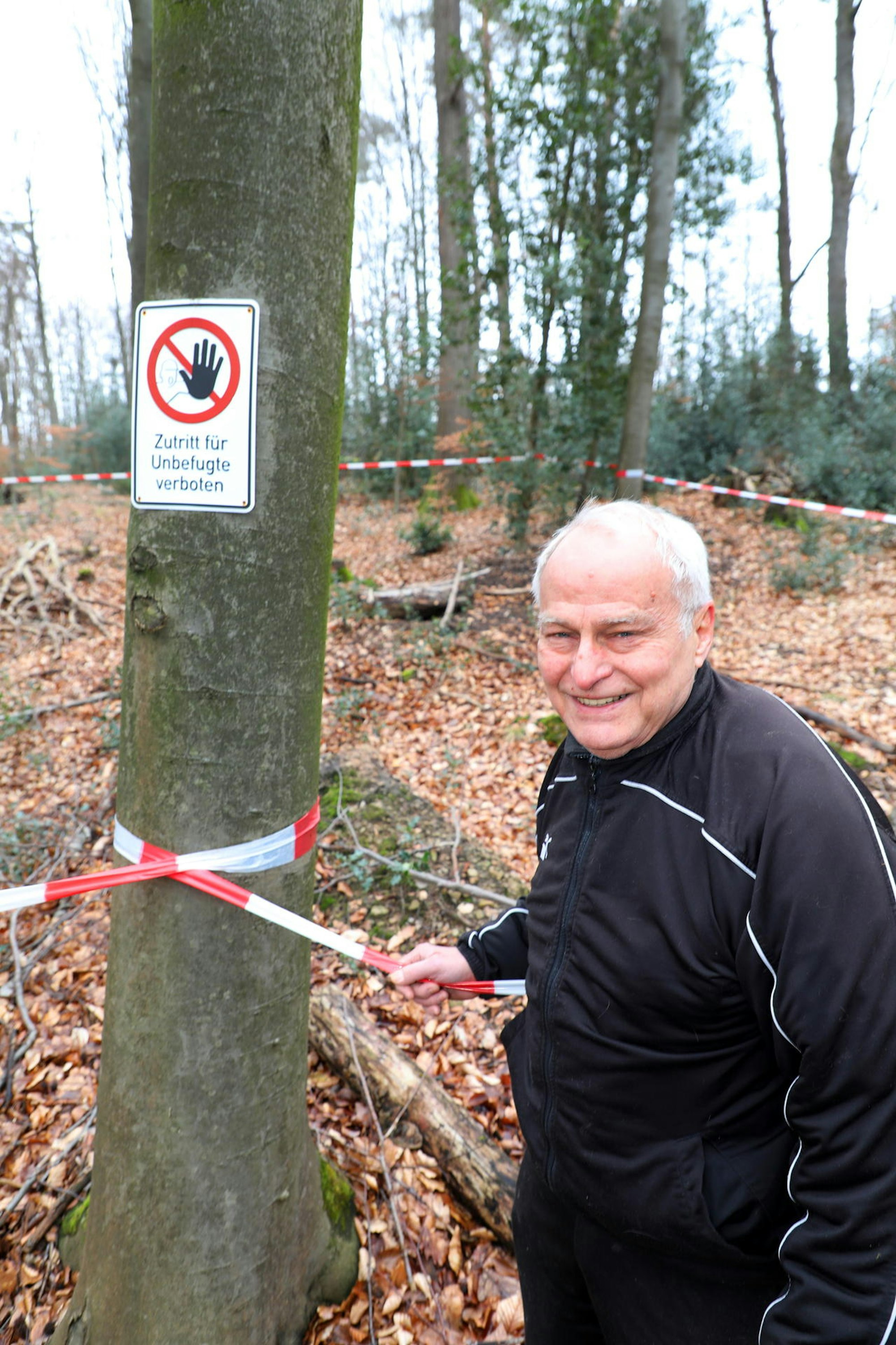 Bergisch Gladbach – „Da vorne ist alles hohl“, sagt Herbert Selbach und nähert sich vorsichtig der mit einigen Hölzern überdeckten Stelle mitten im Wald. Der 74-Jährig klaubt sich einen langen Ast vom Boden und schiebt ihn zwischen den Stämmen hindurch in das darunter verborgene Loch. Vier Meter Ast gleiten widerstandslos in den Hohlraum unter die Erde und ein Ende ist nicht abzusehen. „Hier in der Hardt die Wege zu verlassen, ist mordsgefährlich“, sagt der Geschichtsforscher aus Sand, der das Waldgebiet in der grünen Mitte von Gladbach kennt wie wenige andere.Das Loch vor ihm im Boden, das vom Eigentümer des Waldes bereits weiträumig mit Flatterband abgesperrt wurde, führt in Hohlräume, die vom früher hier betriebenen Erzbergbau stammen. „Allein unter diesem Loch befindet sich ein Hohlraum von 16 Quadratmetern Größe“, sagt Selbach.