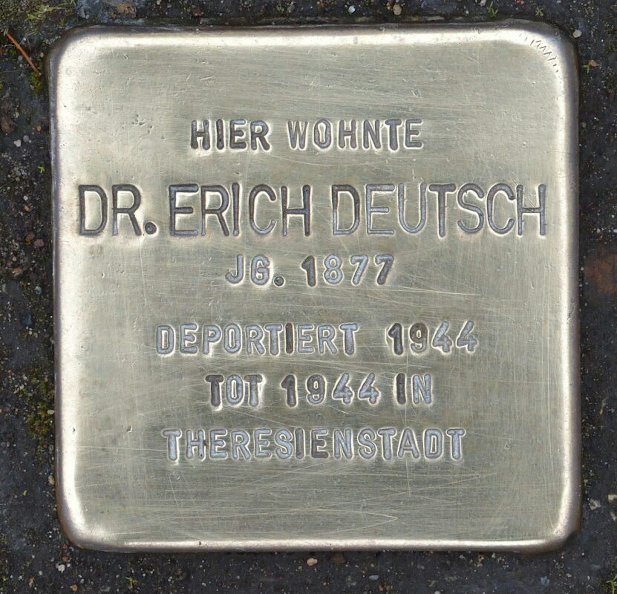 Dieser Stolperstein erinnert dort an Dr. Erich Deutsch, wo einst dessen Arztpraxis gelegen haben soll.