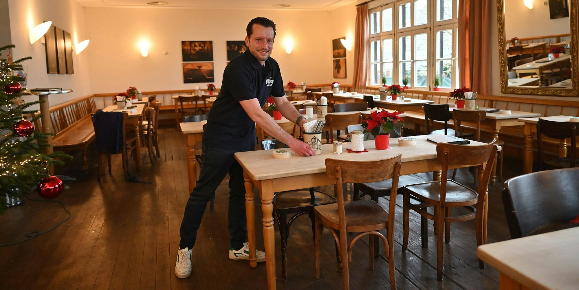 Und gefunden in Sebastian Fitzon. Der Refrather, der seit zehn Jahren die Trattoria Pagano betreibt, hat richtig Lust auf bodenständige, gute deutsche Wirtshausküche. „Hier geht ein Traum für mich in Erfüllung“, sagt der 43-Jährige begeistert. Mit Fingerspitzengefühl hat er die Wirtsräume renoviert, ein bisschen aufgeräumt.