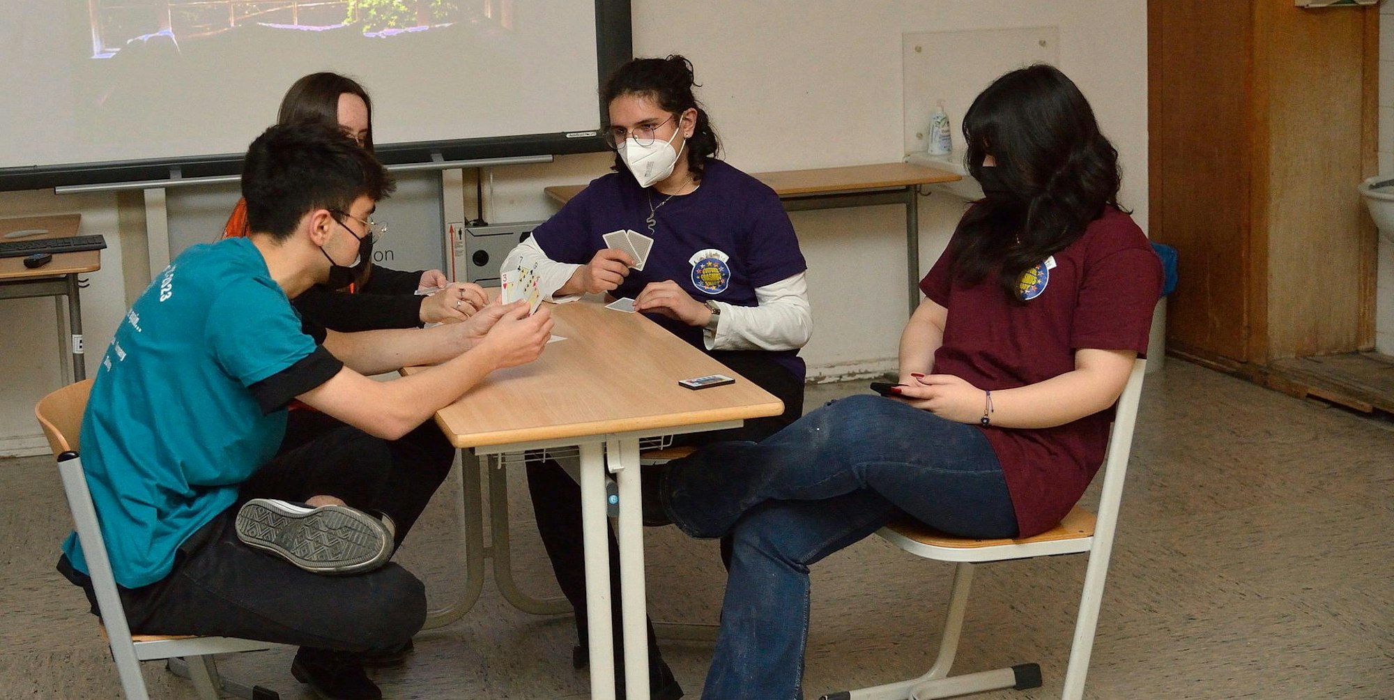Die übrigen im Team mussten umplanen und zunächst auch bangen, sich ebenfalls angesteckt zu haben. Doch am Ende konnte die Aufführung mit einem immerhin 80-köpfigen Publikum über die Bühne gehen. Nach dem Konzept zeigen Kleingruppen von jeweils etwa fünf Jugendlichen ihre selbst entwickelten Szenen, jeweils in einem Klassenraum vor einem Teil des Publikums. Nach einer Einzelszene wechseln die Publikums-Gruppen den Raum, um dort eine andere Szene zu sehen.