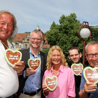 Über den Köpfen der Band hängen Plakate von Filmen, darunter auch der Wim-Wenders-Streifen „Himmel über Berlin“. In dem mimte Stier einen sterbenden Motorradfahrer, die Zuschauer im Kirchgarten nimmt er ausführlich mit in die Gepflogenheiten am Filmset – und in das Drama davor, als er sich bei den damals noch von den Schauspielern selbst zu führenden Gagen-Verhandlungen fast verzockt hätte („Wegen ein paar Mark hätte ich fast einen Film mit Wenders sausen lassen“).