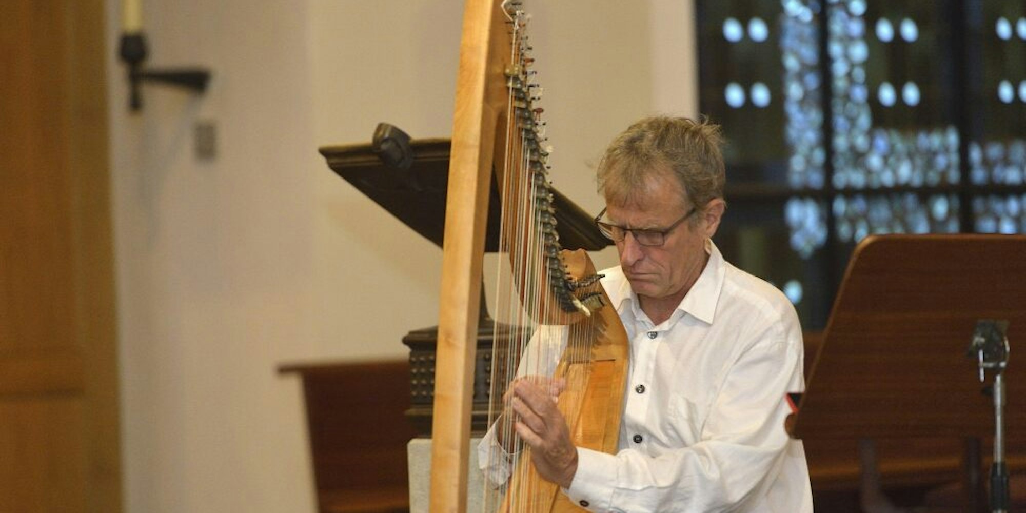 Harfenist Tom Daun spielte in St. Johann Baptist vor „vollem“ Haus.