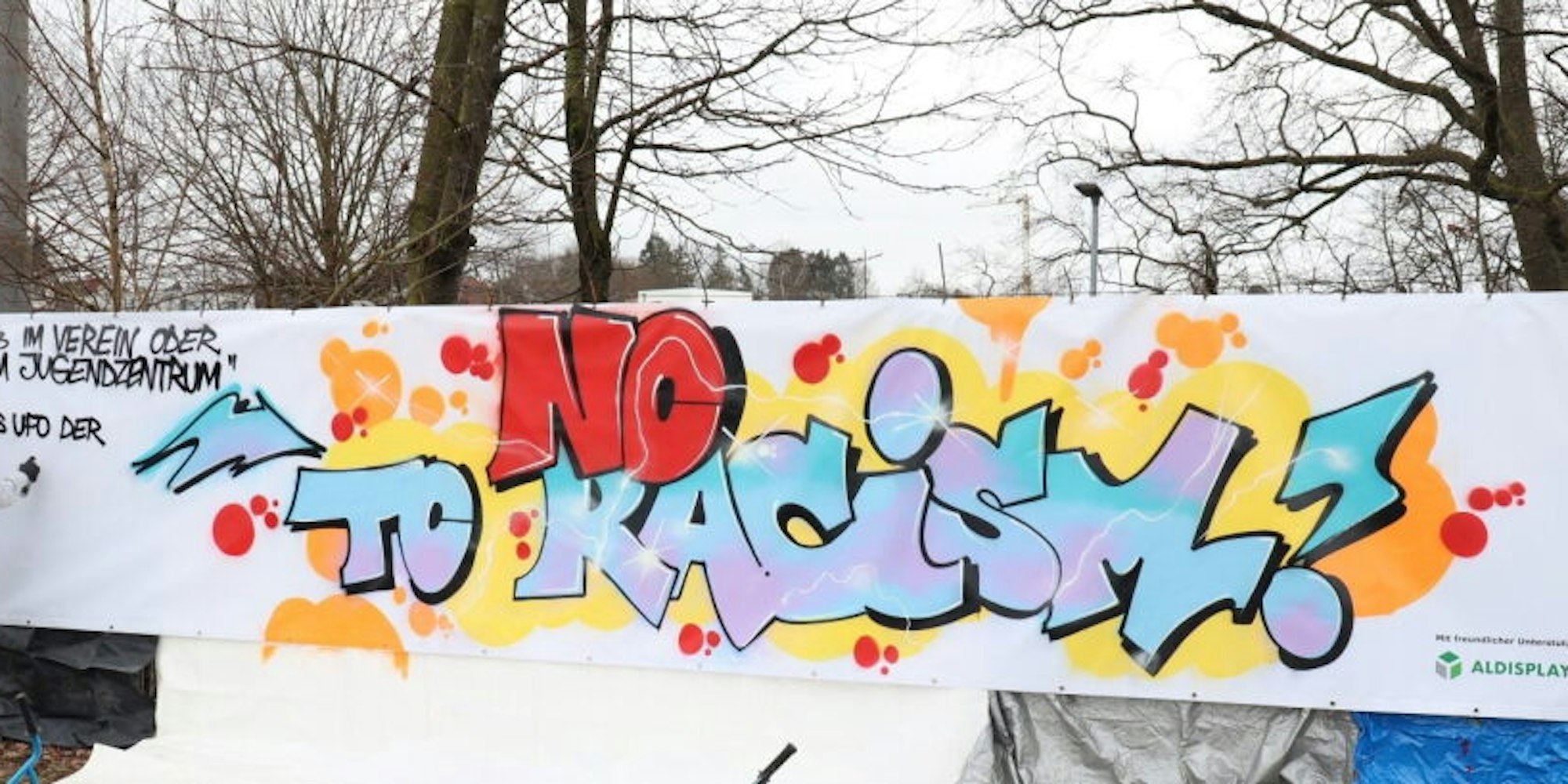 Moitzfeld – Ob im Verein oder im Jugendzentrum: Das Jugendkulturhaus Ufo der AWO und der TuS Moitzfeld sprechen sich gegen Rassismus aus. Dazu haben sie anlässlich des „Internationalen Tags gegen Rassismus“ ein buntes Graffiti-Banner mit dieser Botschaft am Sonntag am Sportplatz des TUS Moitzfeld gestaltet.