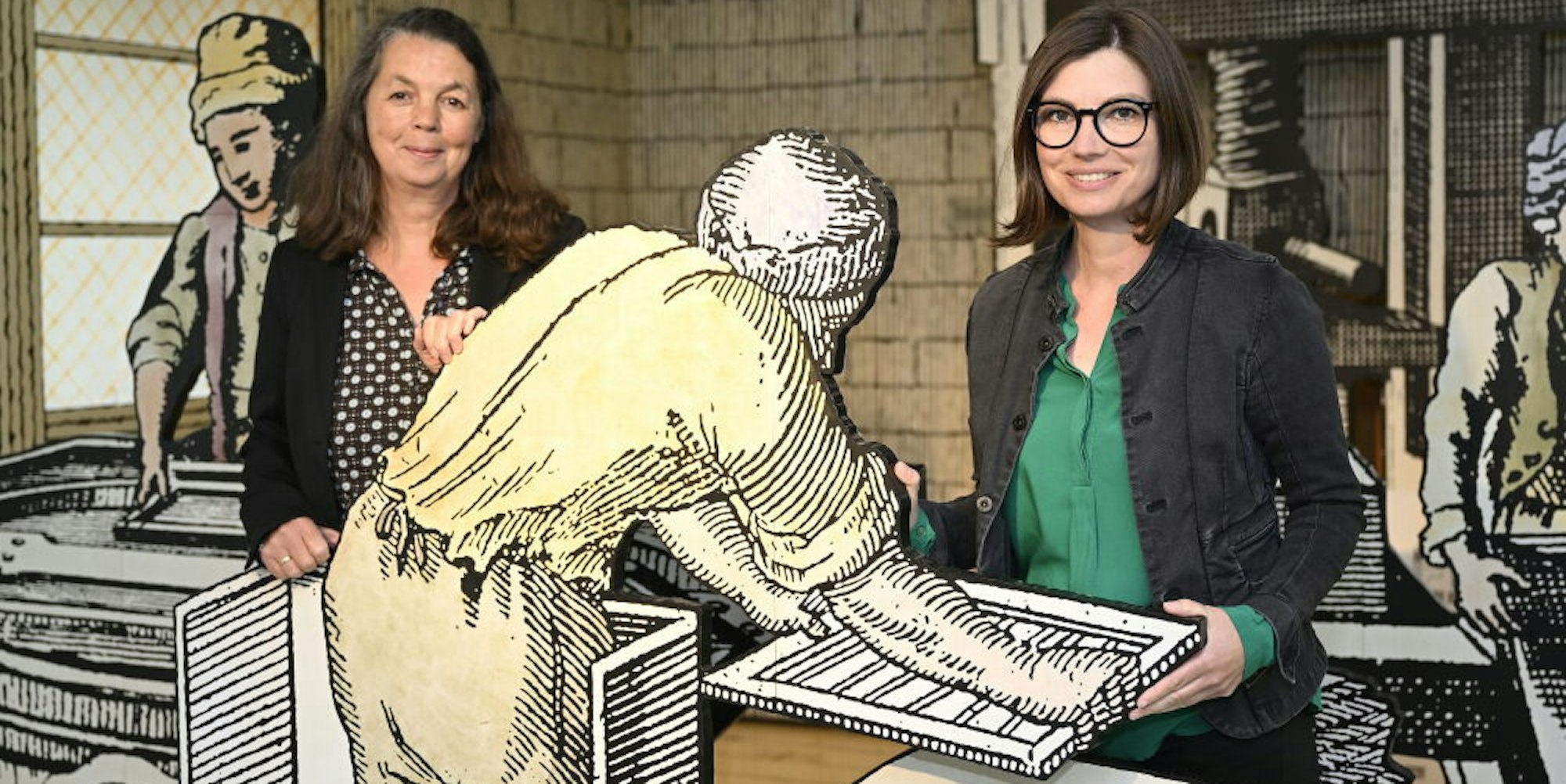 Die Präsentation, sind sich die Expertinnen einig, sei ein bisschen in die Jahre gekommen und könne ein Update und neue Impulse gut vertragen. „Das haben wir bei den Themenausstellungen, wie zuletzt übers Klopapier, schon lange gemacht.“ Während die Historie als wichtiges Standbein gut vertreten ist, wollen Nanko und Schrick sich um die Zukunft des Papiers kümmern und moderne Präsentationsformen testen.