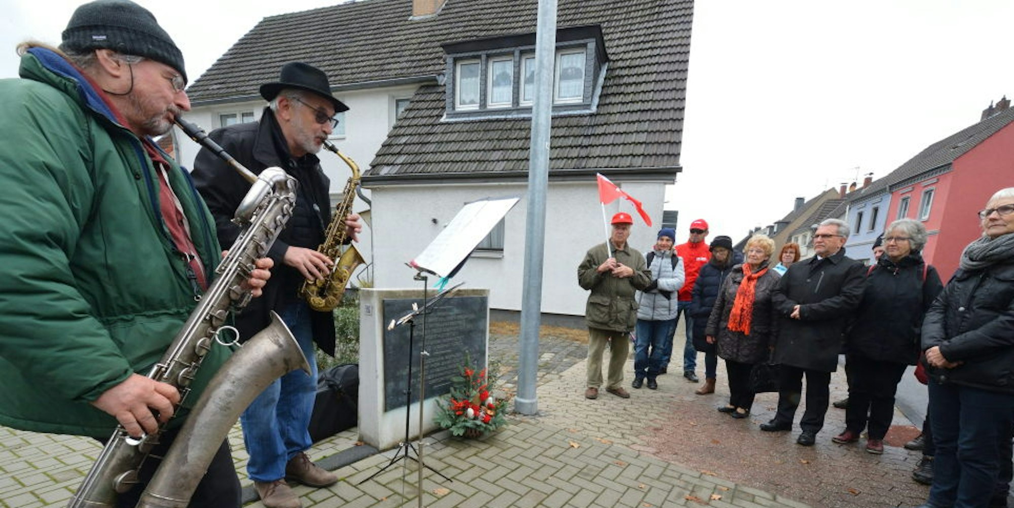 Mahnwache an der Gedenktafel des ehemaligen Stella-Werks in Heidkamp.