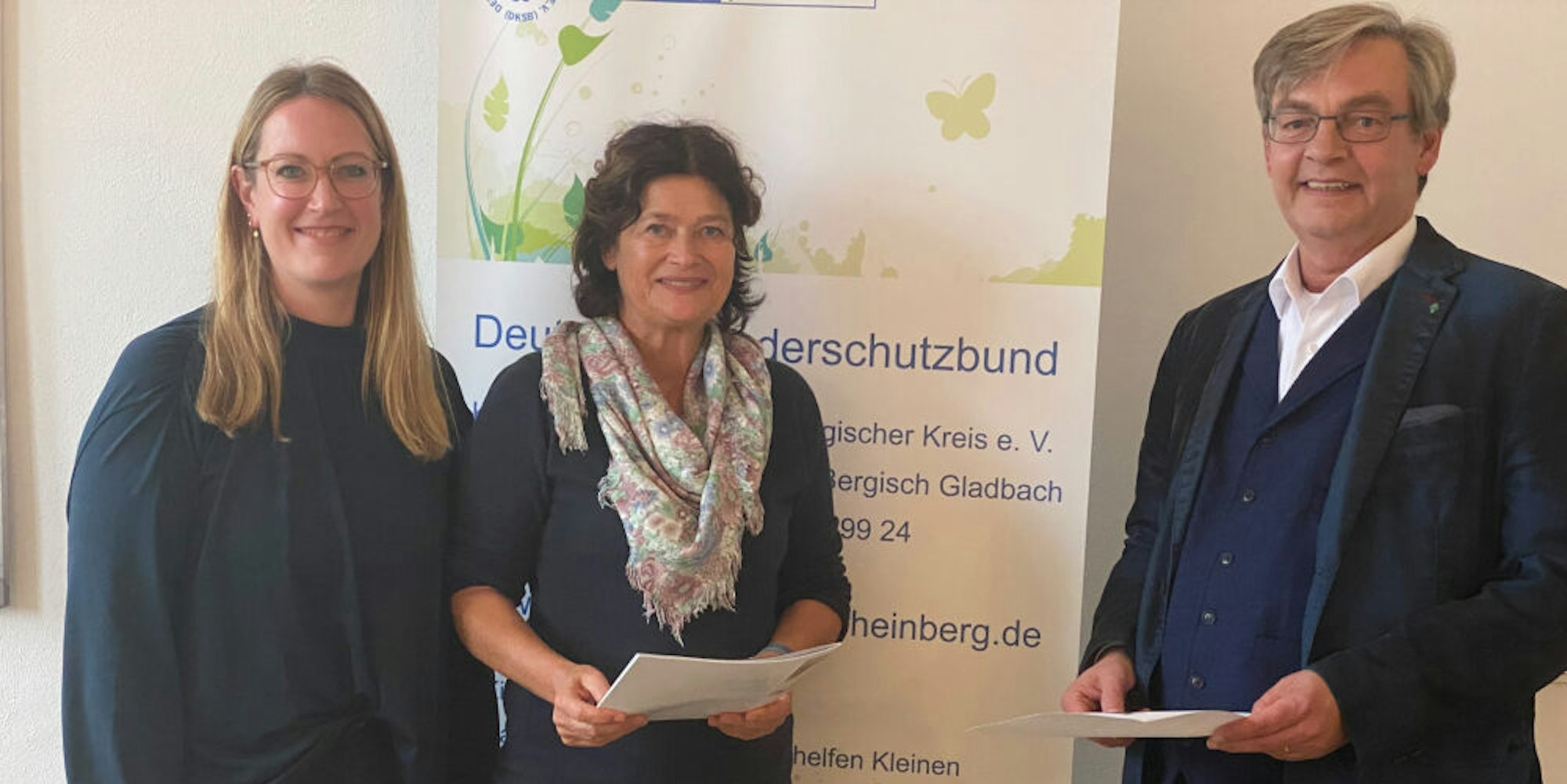 Britta Widdig (Fachkraft für Kinderschutz) mit Katrin Fassin (pädagogische Leiterin) und dem Vorsitzenden Michael Zalfen (v. l.).