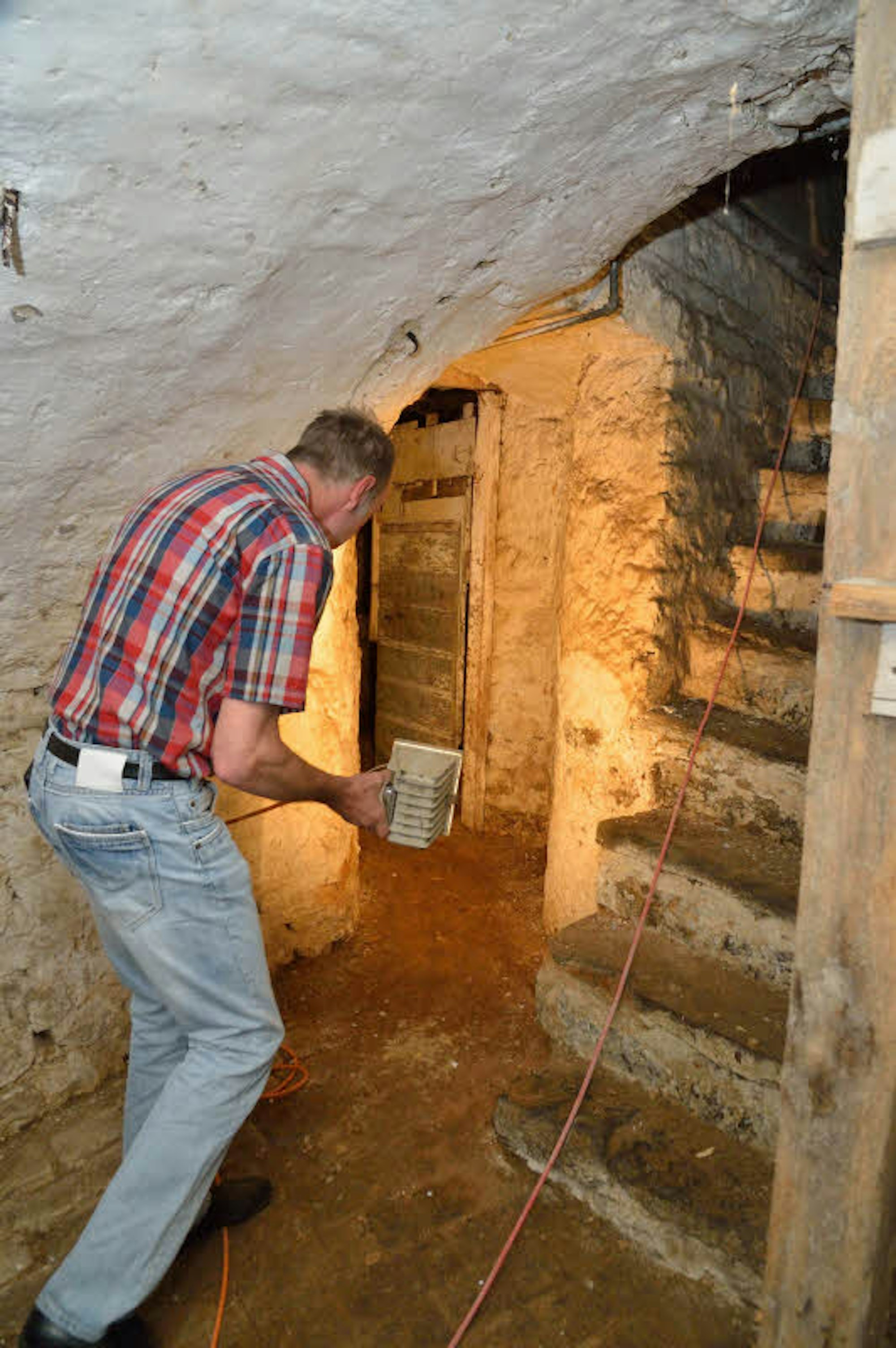 „Hier ist natürlich nichts DIN-genormt“, sagt Thorsten Schrolle vom Amt für Denkmalpflege des Landschaftsverbands Rheinland lächelnd. Was nicht weiter verwundert, stammt doch das Kerngebäude vermutlich aus dem frühen 17. Jahrhundert, einer Zeit, in der die Menschen eher mit marodierenden Soldaten zu tun hatten und froh waren, überhaupt ein Dach über dem Kopf zu haben.