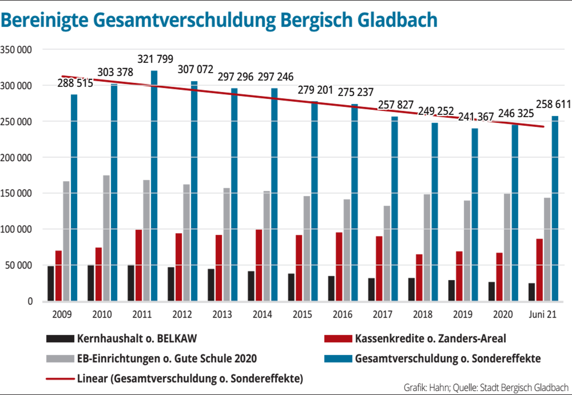 Hinzu kommt nun auch noch ein kräftiger Anstieg der Personalkosten. Viele Stellen sind ausgeschrieben, aber noch unbesetzt. Gladbach steht vor einem echten Investitionsschub – finanziert über Schulden.