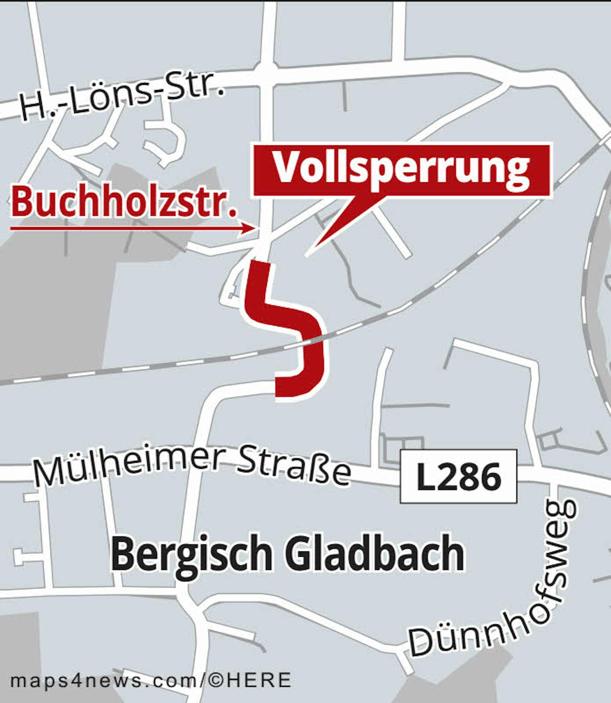 Bergisch Gladbach – Eine neue Baustelle wird den Verkehr im Stadtteil Gronau ausbremsen. Drei Monate lang wird die Buchholzstraße zwischen Mülheimer Straße und Hermann-Löns-Straße voll gesperrt – wegen Kanalbauarbeiten zum Hochwasserschutz. Am 2. September geht es los.