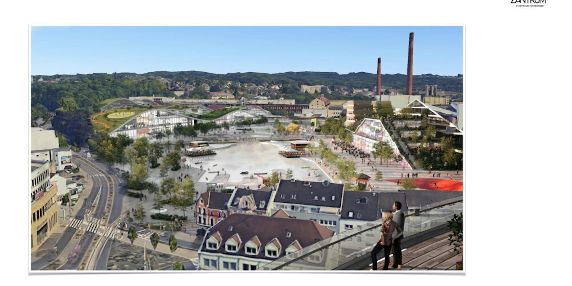 So ganz aus der Luft gegriffen ist die Idee mit dem Zanders-See nicht. Warum? Die Strunde, die noch unterirdisch die Fabrik kreuzt, soll später offengelegt werden und als romantischer Bach plätschern. Vor allem im Süden des Zanders-Geländes soll sie alsbald die Gladbacher erfreuen. Naturnahes Gestalten mit Uferbereichen soll kommen. Und die Klärbecken der Fabrik, im Moment unschöne Anlagen, sollen laut jüngsten Ideenfindung zu einer Art Aqua-Park umgenutzt werden. Für das Grundwasser, das abgeleitet werden muss, könnte ein „Grachtensystem“ kommen, denken die Planer. Zum See ist es da nur ein kleiner Gedankensprung.