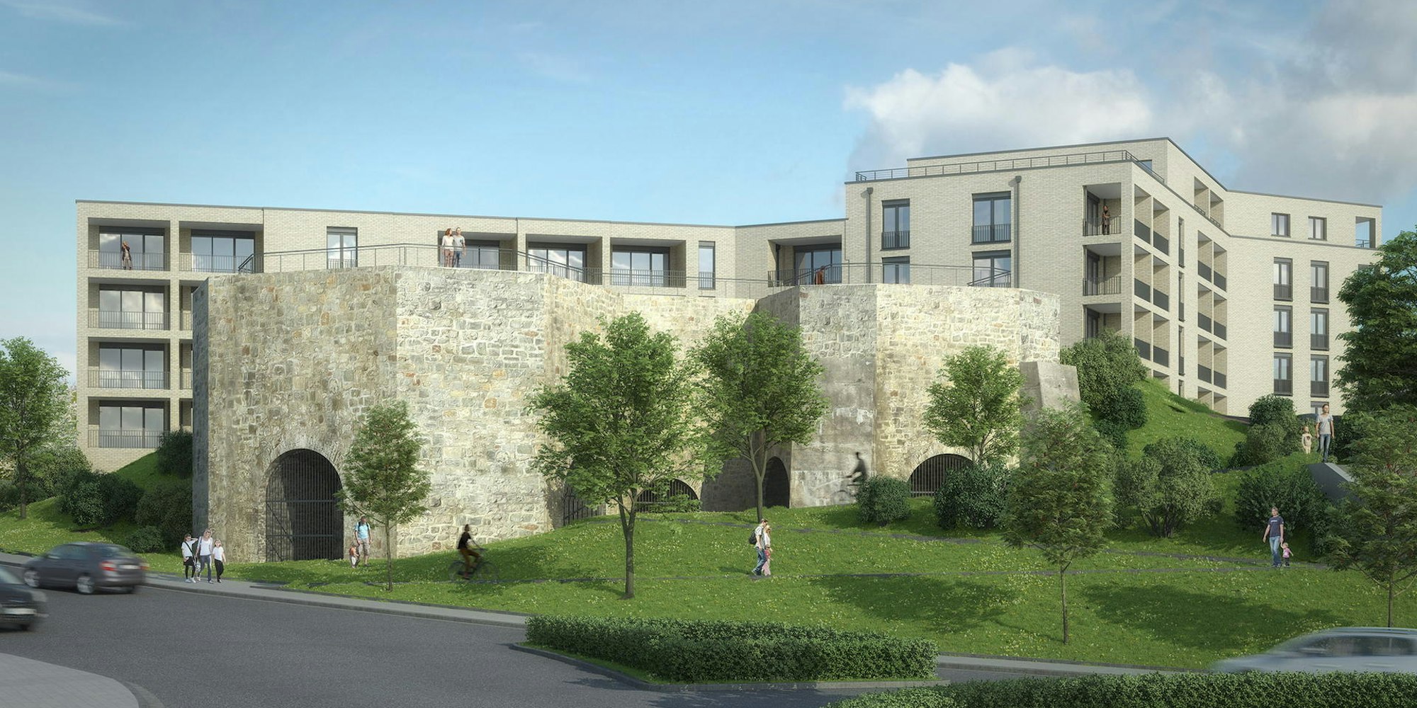 Bis Ende 2023 werden rund um die Kalköfen insgesamt 168 hochwertige Miet- und Eigentumswohnungen entstehen, geplant ist auch eine Hotelanlage. Vivawest baut davon 123 barrierefreie Wohnungen, das Invest des Konzerns liegt im Millionenbereich. Dass das sogenannte „Kalköfen Carrée“ ein weiteres Großprojekt für sein in ganz NRW tätiges Unternehmen sei, verdeutlichte Geschäftsführer Uwe Eichner im Gladbacher Schniesel. Von der Grenzland-Bau war Geschäftsführer Marco Körkemeyer nach Gladbach gekommen.