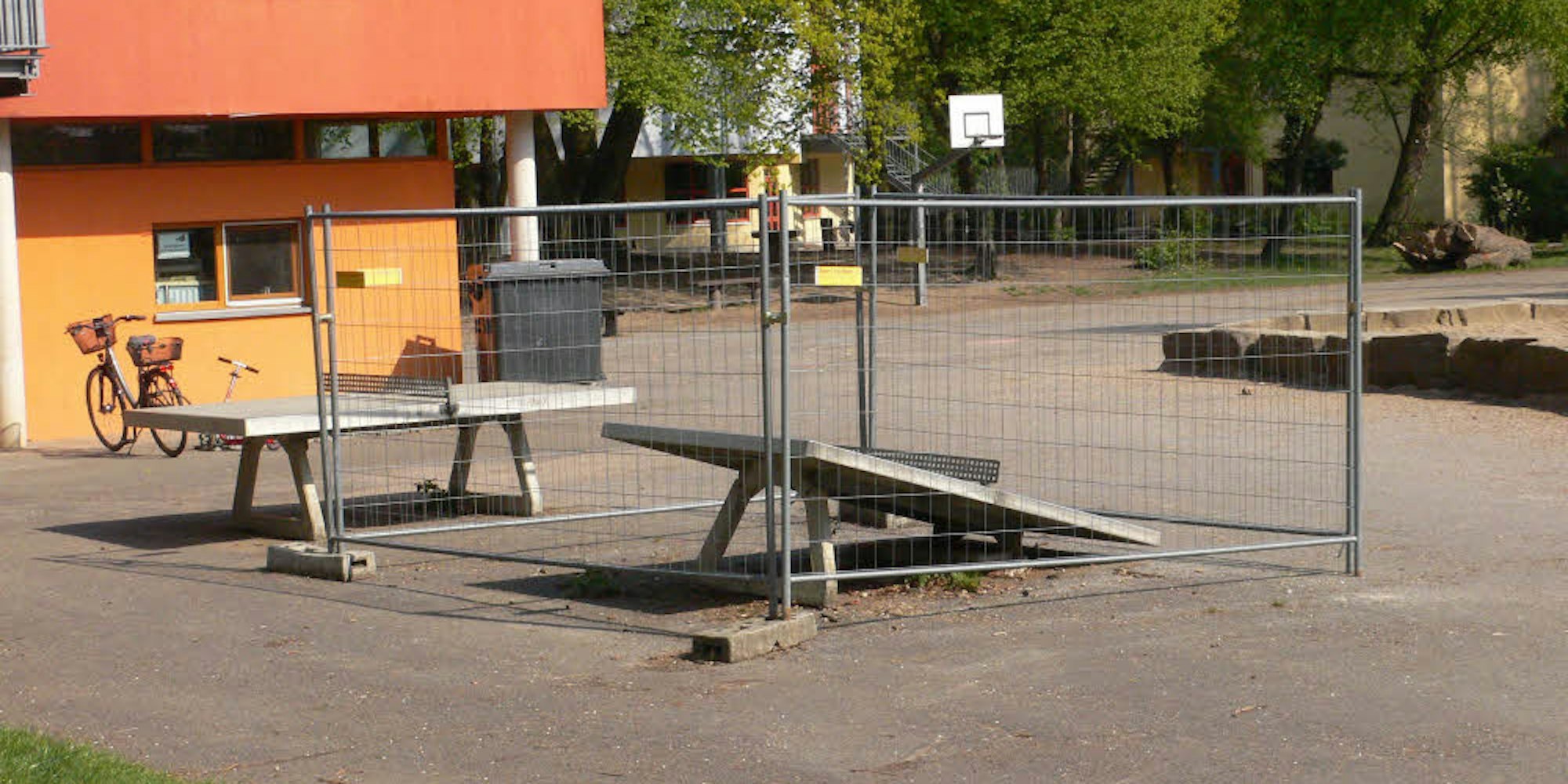 Mittlerweile habe die Stadtverwaltung von der Schule jedoch die Information bekommen, dass man dort eine Schaukelanlage installieren wolle, die aus Eigenmitteln (Spenden, Förderverein und so weiter) finanziert werden soll. Die zerstörte Tischtennisplatte und der Bauzaun seien in den vergangenen Tagen deshalb bereits abgeräumt worden.