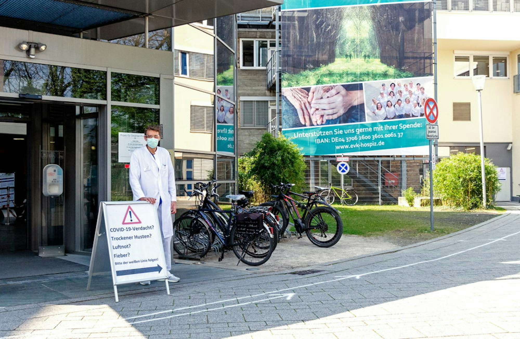 „Natürlich werden diese vor der Aufnahme auf Covid-19 gescreent.“ Man versuche derzeit eine „ganz behutsame Wiederaufnahme“ des OP-Betriebs. Auch das EVK nimmt zum Beispiel in der Kardiologie wieder Herzkatheter-Eingriffe vor, bestätigt Professor Hans-Peter Herrmann, ärztlicher Leiter der Klinik. Dieses Programm könne jederzeit wieder reduziert werden. In allen Krankenhäusern trifft sich täglich ein Krisenstab, um gemeinsam und mit dem Kreis die Situation aktuell zu bewerten.