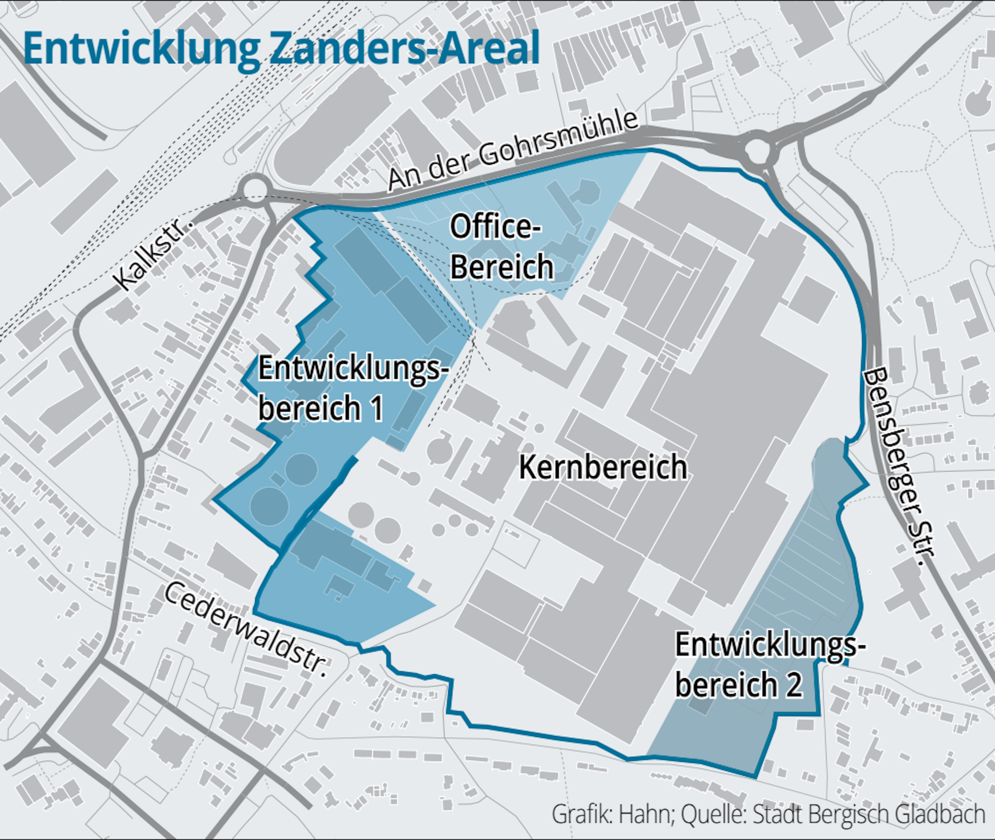 Ein Großteil des Zanders-Areals wird von der Papierfabrik genutzt.