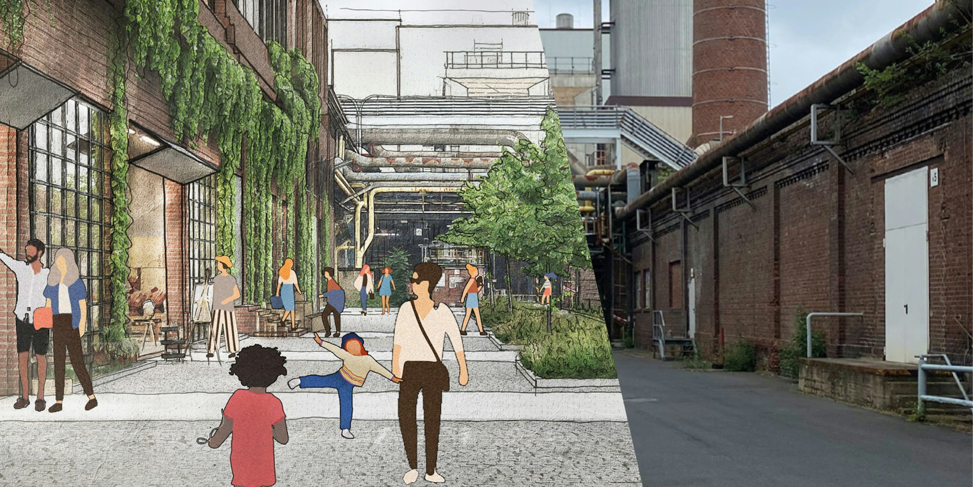 Junges Leben zwischen alten Industriebauten: So wie auf dieser von der Bergisch Gladbacher Stadtverwaltung veröffentlichten Collage könnte es einmal auf dem Gelände der früheren Papierfabrik aussehen.