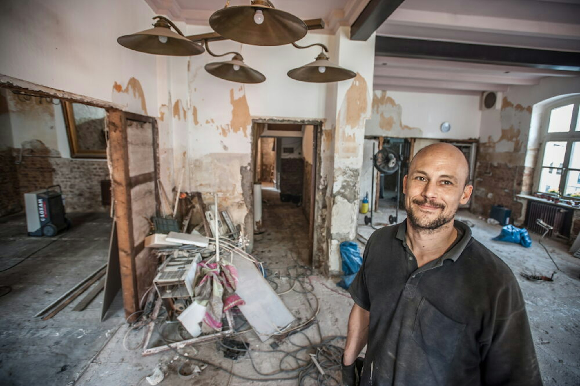 Handwerker Tobias Froese hat einiges zu tun: Der Bergische Hof soll Anfang des Jahres wieder eröffnen.