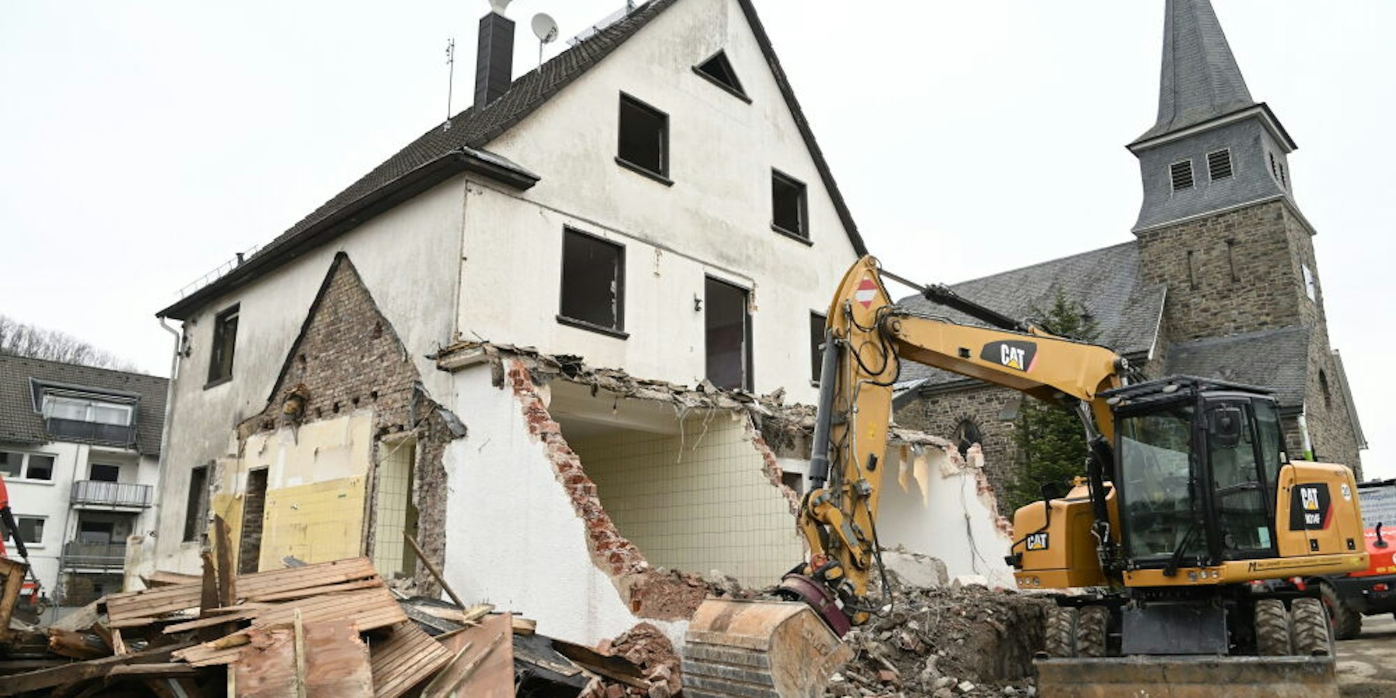 Historisches Gebäude verschwindetBagger nagt an der alten Metzgerei in Biesfeld