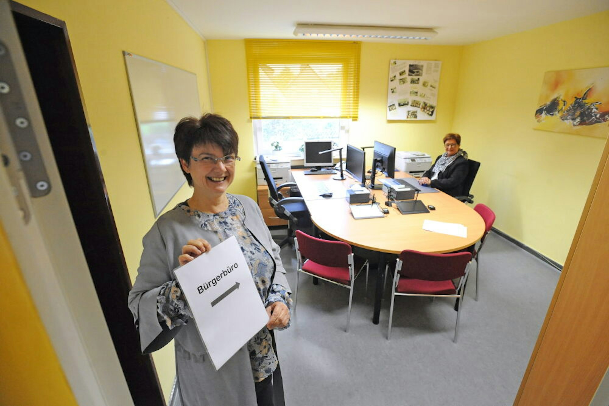 Amtsleiterin Brigitte Gutendorf (links) und Claudia Gerlach im 2019 eröffneten Bürgerbüro im Konrektorenzimmer der Grundschule.