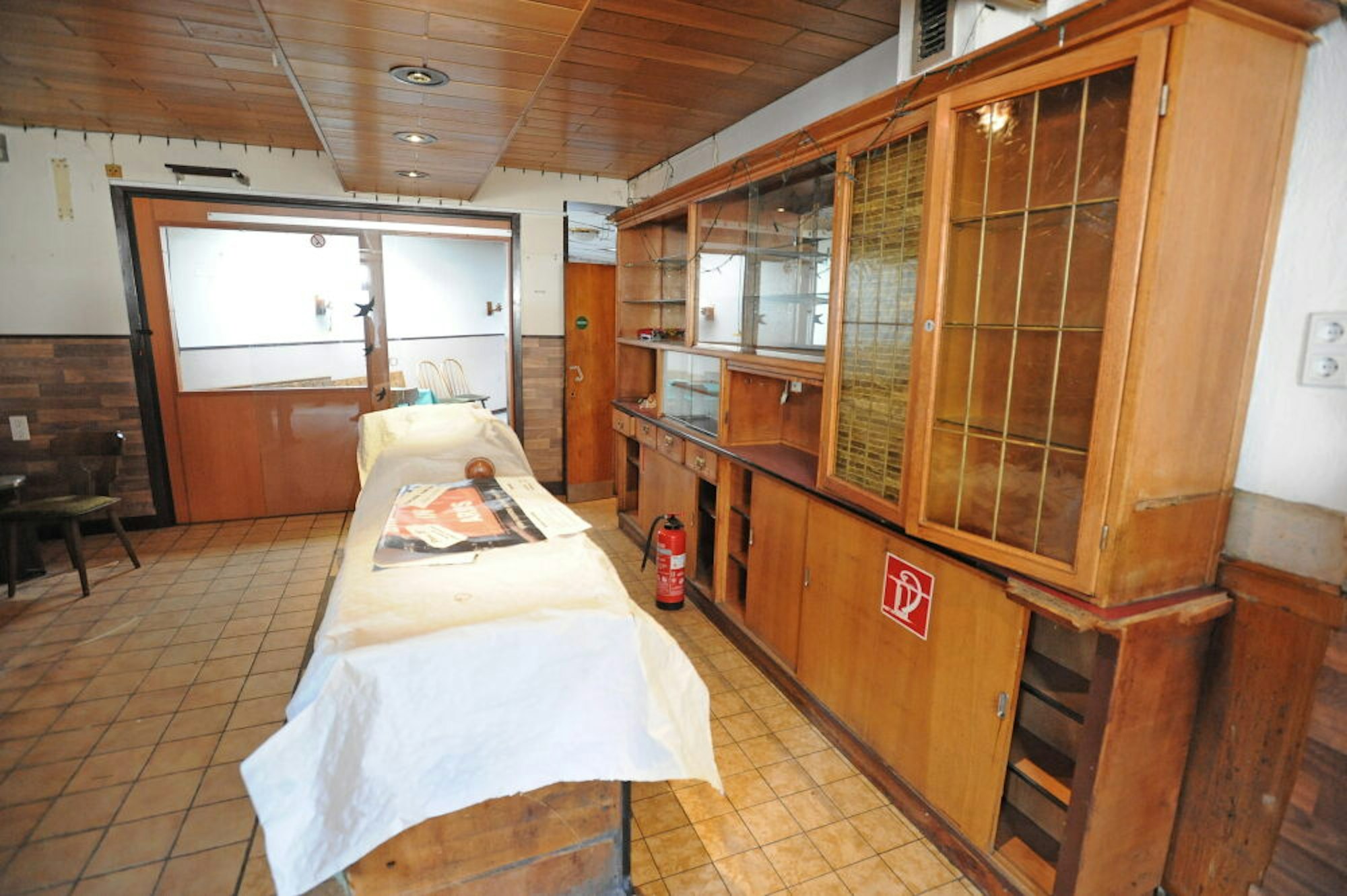 In manchen Ecken des Hauses sieht es aus, als seien die letzten Gäste gerade erst gegangen. Vor der früheren Kegelbahn stehen noch Stühle. Auf dem Unterschrank der Zapftheke liegt ein Konzertplakat. An der Wand hängt ein Mannschaftsfoto von der Aufstiegsfeier der Fußballer des VfL von 2007, im Bierkeller die Bedienungsanleitung für die Fassanlage. Und unter der Saaldecke, über dem Klavier, das noch schräg klimpern kann, hängen Girlanden und Plastik-Blumen von der letzten Feier.