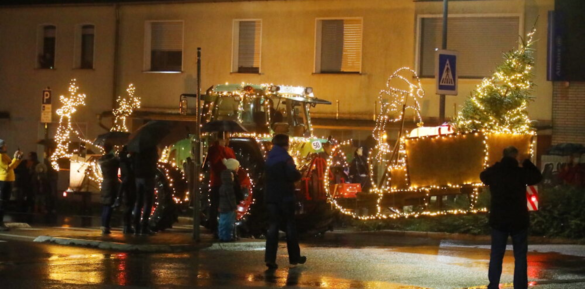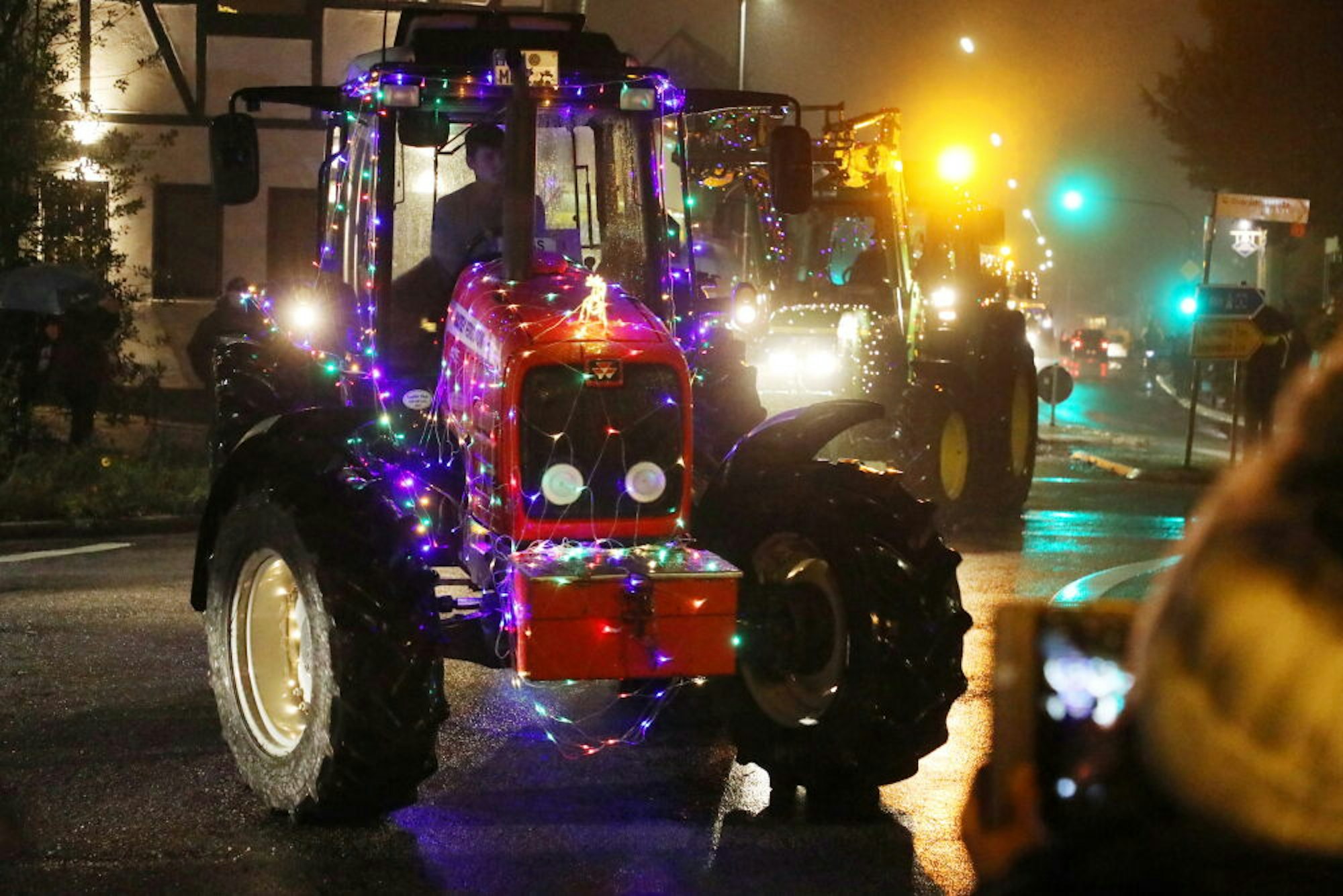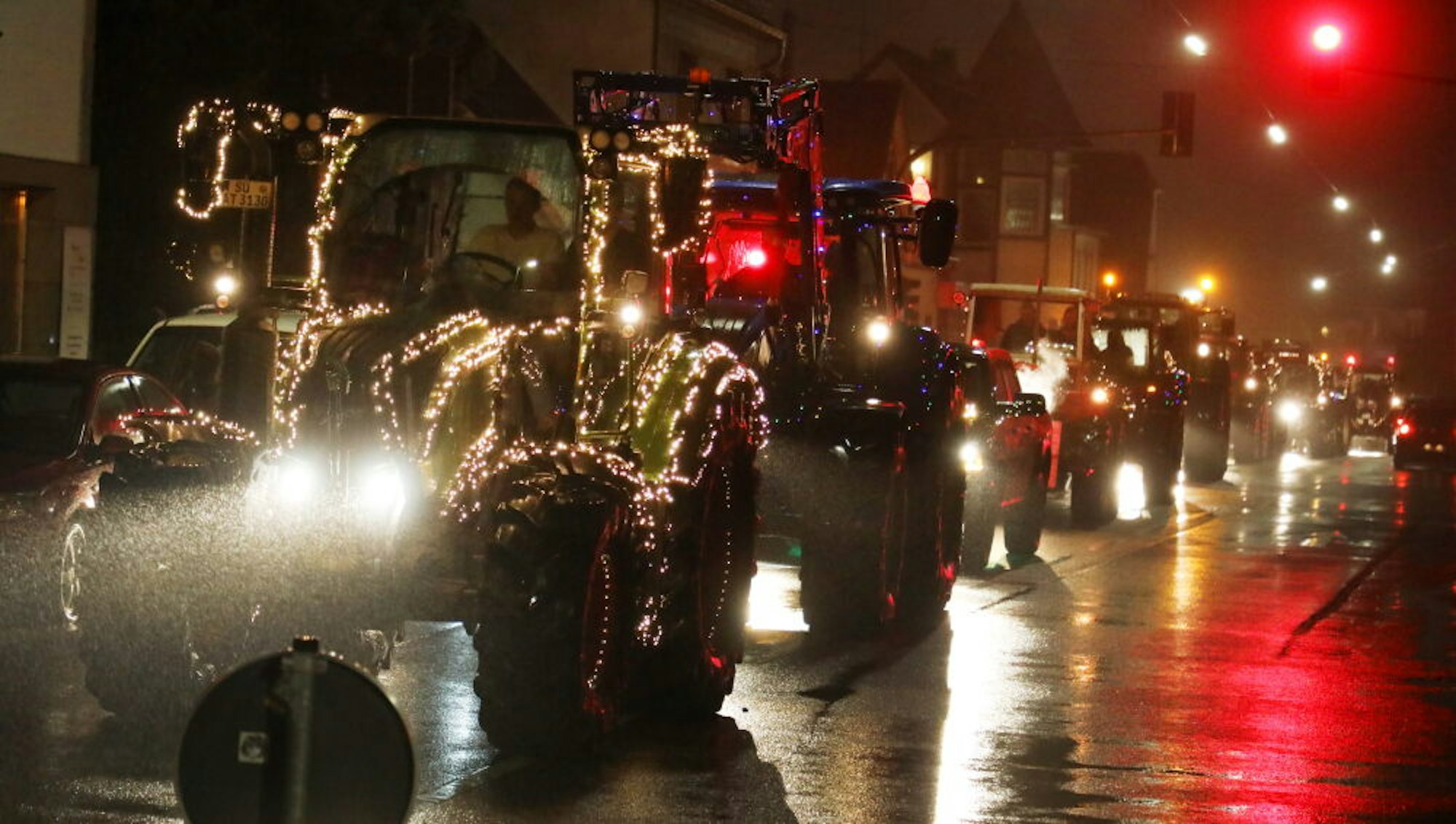 Bunte Lichter, ernste BotschaftWeihnachtliche Traktoren tuckern durch Rhein-Berg