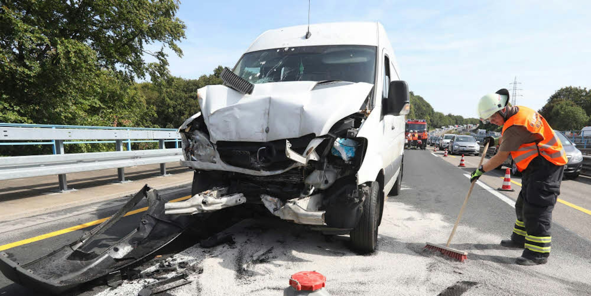 Ein Einsatz auf der Autobahn: Die Feuerwehr bindet das bei einem Unfall ausgetretene Öl ab.