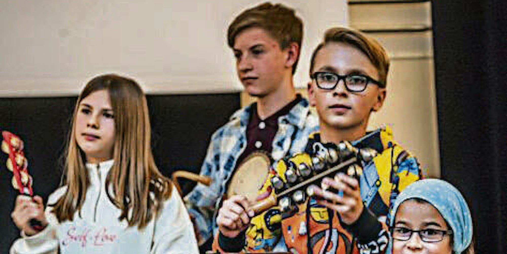 „Für das Konzert haben wir vor allem viele Lieder vom letzten Mal noch verbessern können“, erzählte der 14-jährige Malte. Für Malte und Philipp ist es bereits der fünfte Auftritt gewesen, doch auch die beiden Musikerkolleginnen Mina (8) und Hanna (11) sind schon seit zwei Jahren dabei und bringen Rhythmuserfahrung mit. „Die vier sind nicht nur Musiker, sondern auch Komponisten der Lieder“, betonte Riechert.