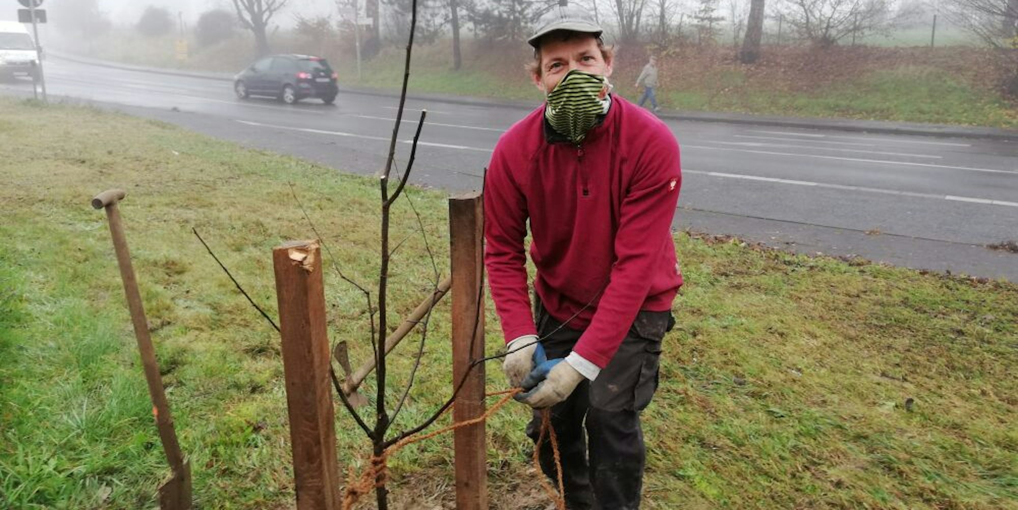 Baumpfleger Harald Hamel pflanzte gestern auch eine Quitte an der Kreuzung Hilgener- und Witzheldener Straße.