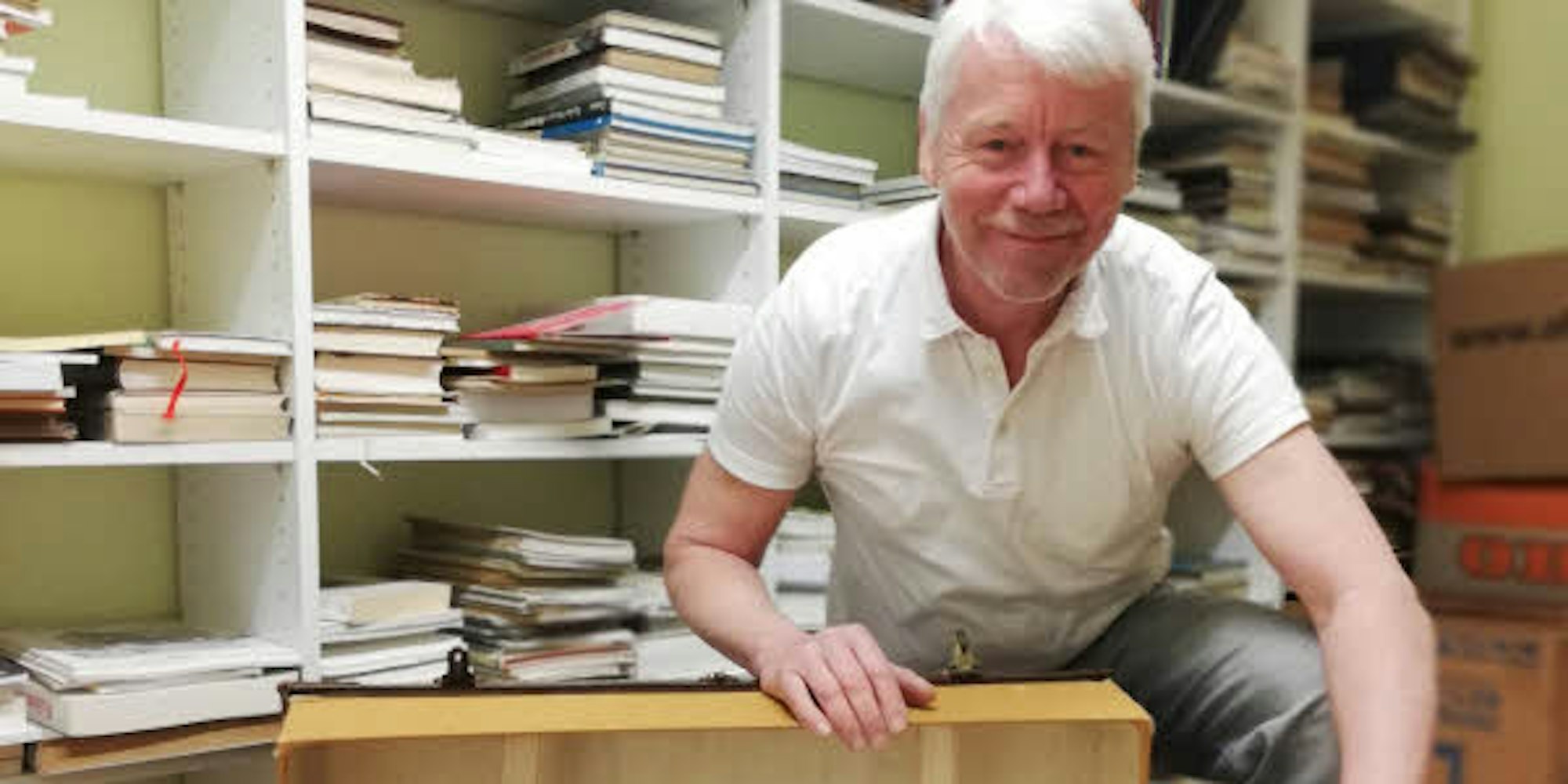 Burscheid – Karl Ulrich Voss arbeitet mit dem Akkuschrauber, baut Regale und Paravents. Zwischen Leimtuben und Klebeband liegen die Bestände des Bergischen Geschichtsvereins, Abteilung Burscheid, und der neue Vorsitzende blättert zwischen Schrauben, Leimen und Kleben immer wieder in einem Buch nach.