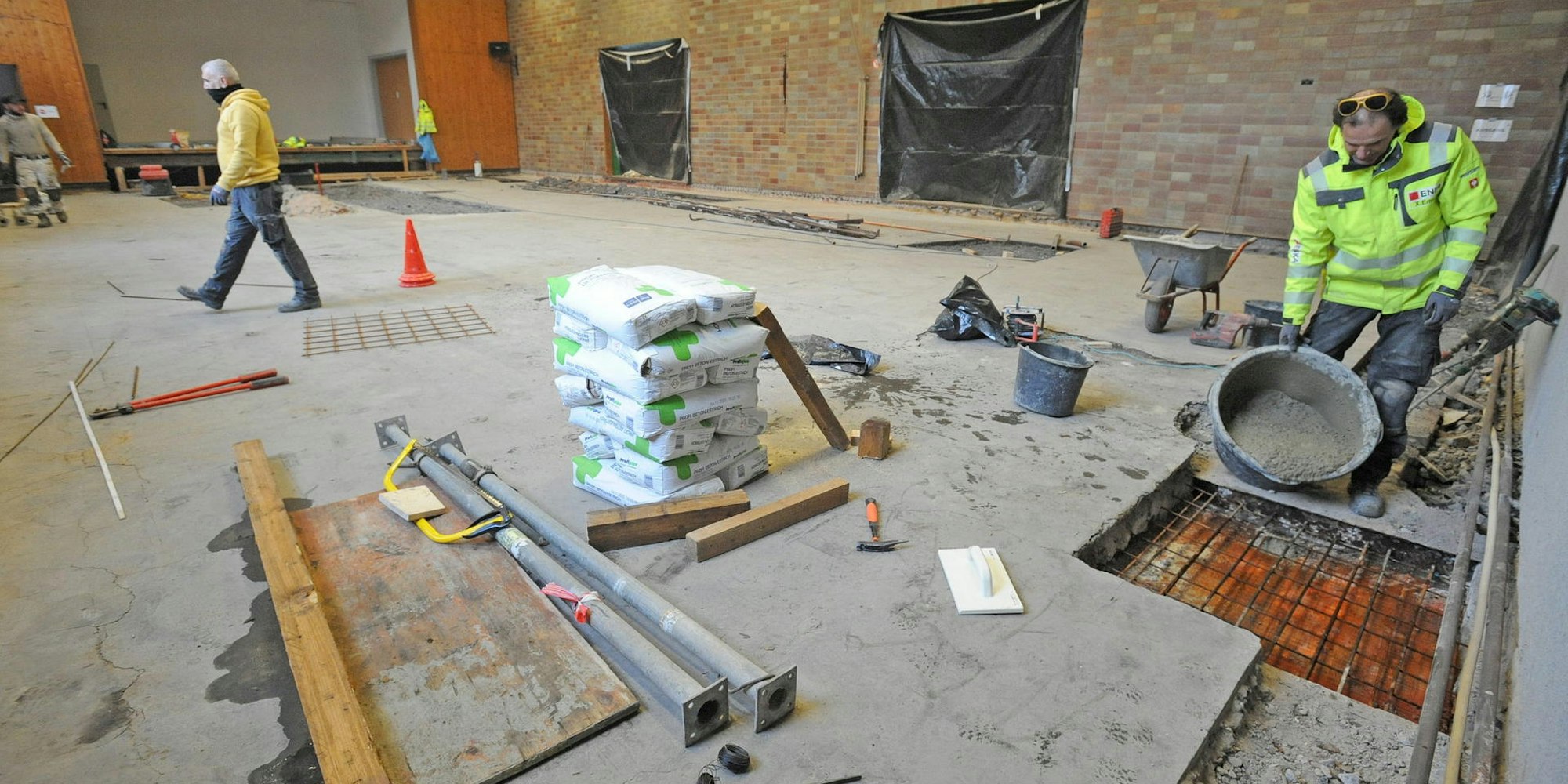 Zwar müsse der Verein auf jeden Fall noch „mehrere Zehntausend Euro“ zuschießen, dafür habe man aber ja auch Rückstellungen gebildet. Neben dem Boden werden auch die Heizungsanlage und die Brennwerttherme saniert. Um eine Fußbodenheizung zu installieren, muss auch die Unterschicht des Hallenbodens raus – eine Großbaustelle.