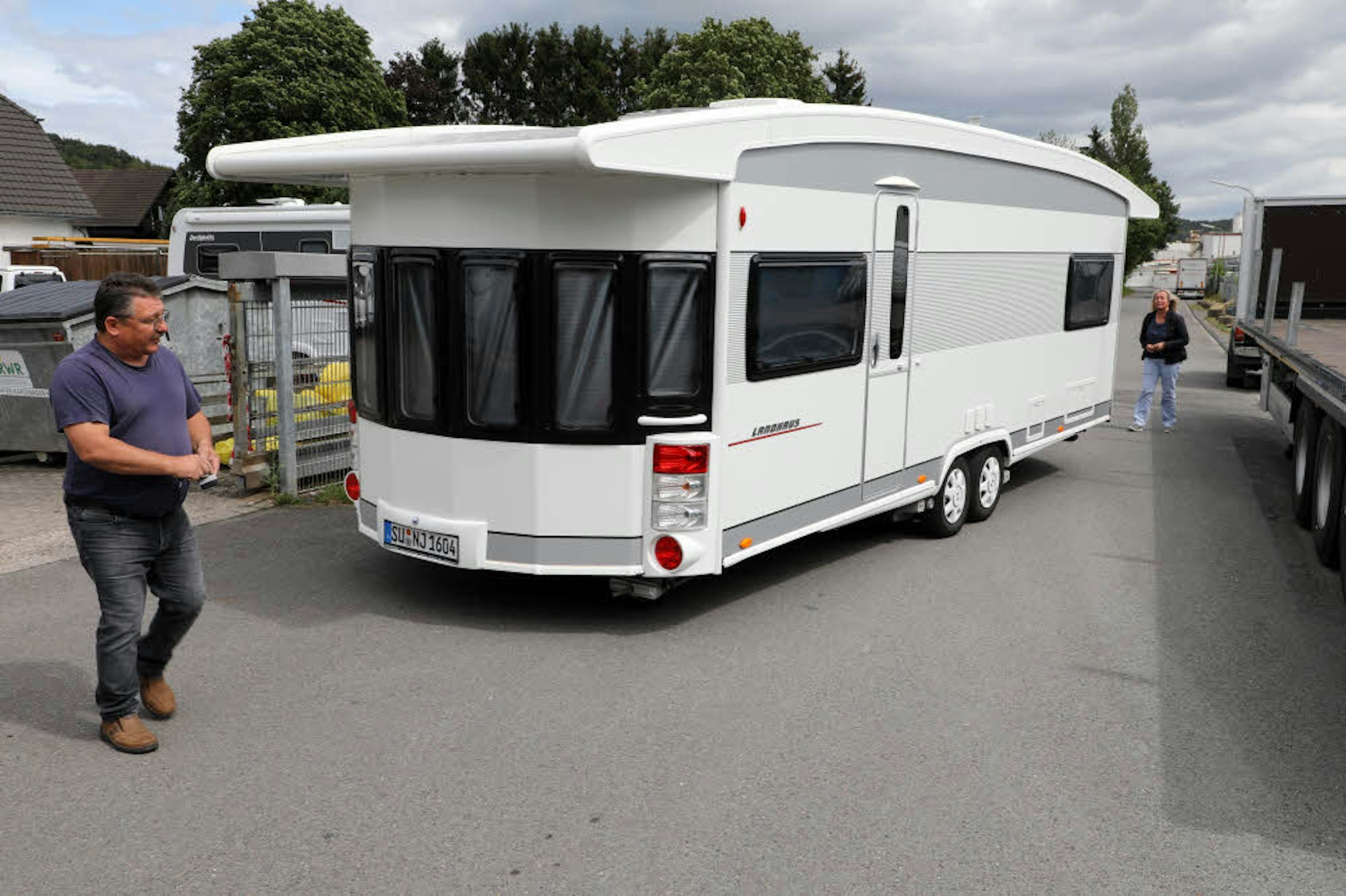 Gelassen steuern Jürgen Niemczik und Michaela Nolden ihr Wohnwagen-Gespann auf der Straße hinunter nach Overath zur Inspektion. Dabei haben sie an diesem Tag anderthalb Stunden für den Weg von Much nach Overath gebraucht – normalerweise dauert das nicht mal eine halbe Stunde.