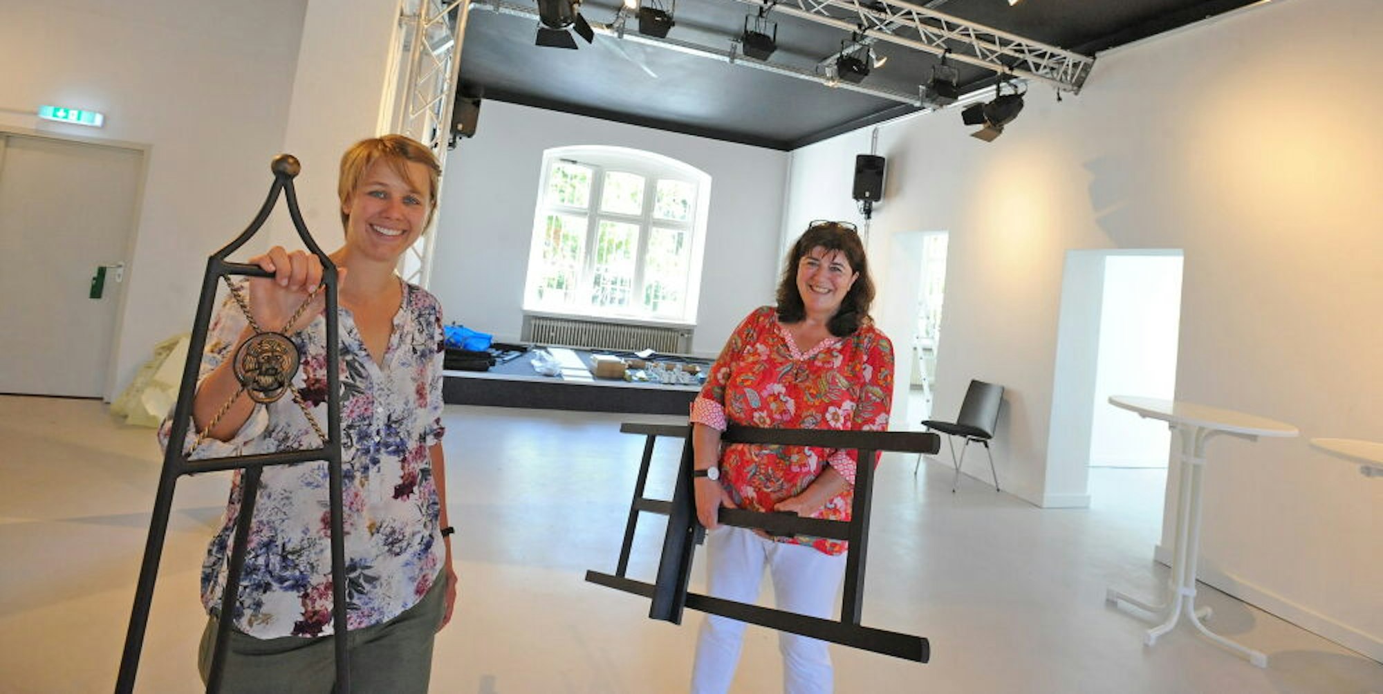 Am Veranstaltungsraum wird noch gearbeitet, erläutern Rebecca Herrmann und Ute Gerhards vom Bürgermeisterbüro.