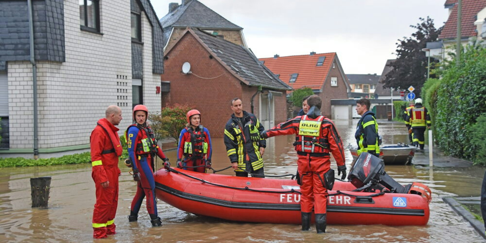 Gerne hätten die Einsatzkräfte auf dieses schreckliche Unglück verzichtet, bei dem in der Stadt zwei Menschen ums Leben kamen, 300 Personen durch die Flut evakuiert werden mussten und sich die Retter im Boot zu dem brennenden Haus an der Neukirchener Straße durchkämpften, das die Feuerwehr nicht mehr erreichen konnte.