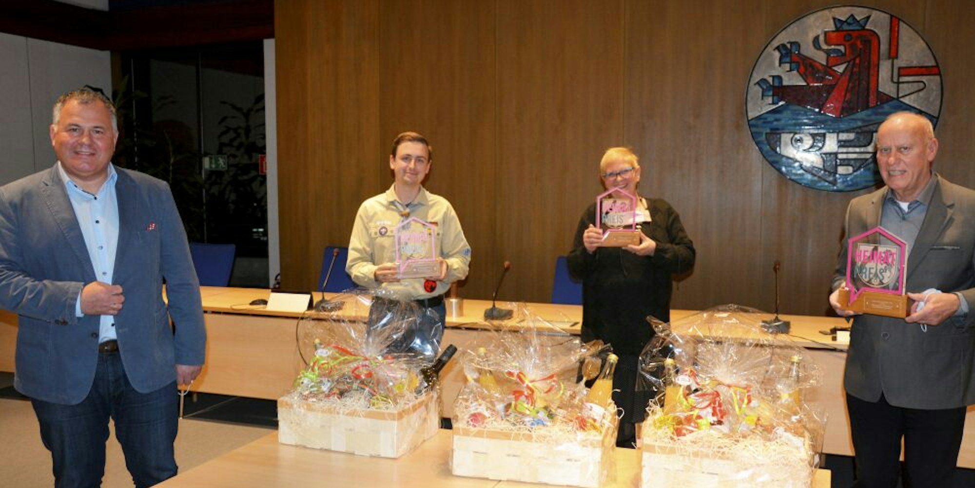 Dagmar Pärsch-Roos vom Förderverein der Stadtbücherei nahm den mit 3500 Euro dotierten ersten Preis entgegen. Patrick Nowak-Chevey vom örtlichen Pfadfinderstamm Wippera bekam für den zweiten Platz 1000 Euro und Reinhold Braun, Vorsitzender der Abteilung Leverkusen-Niederwupper des Bergischen Geschichtsvereins, als Drittplatzierter 500 Euro. Alle erhielten zudem individuelle Geschenkkörbe mit regionalen Spezialitäten.