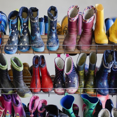 Bobbycars stehen unter Jacken von Kindern, die an einer Garderobe einer Kindertagesstätte hängen. (Symbolbild)