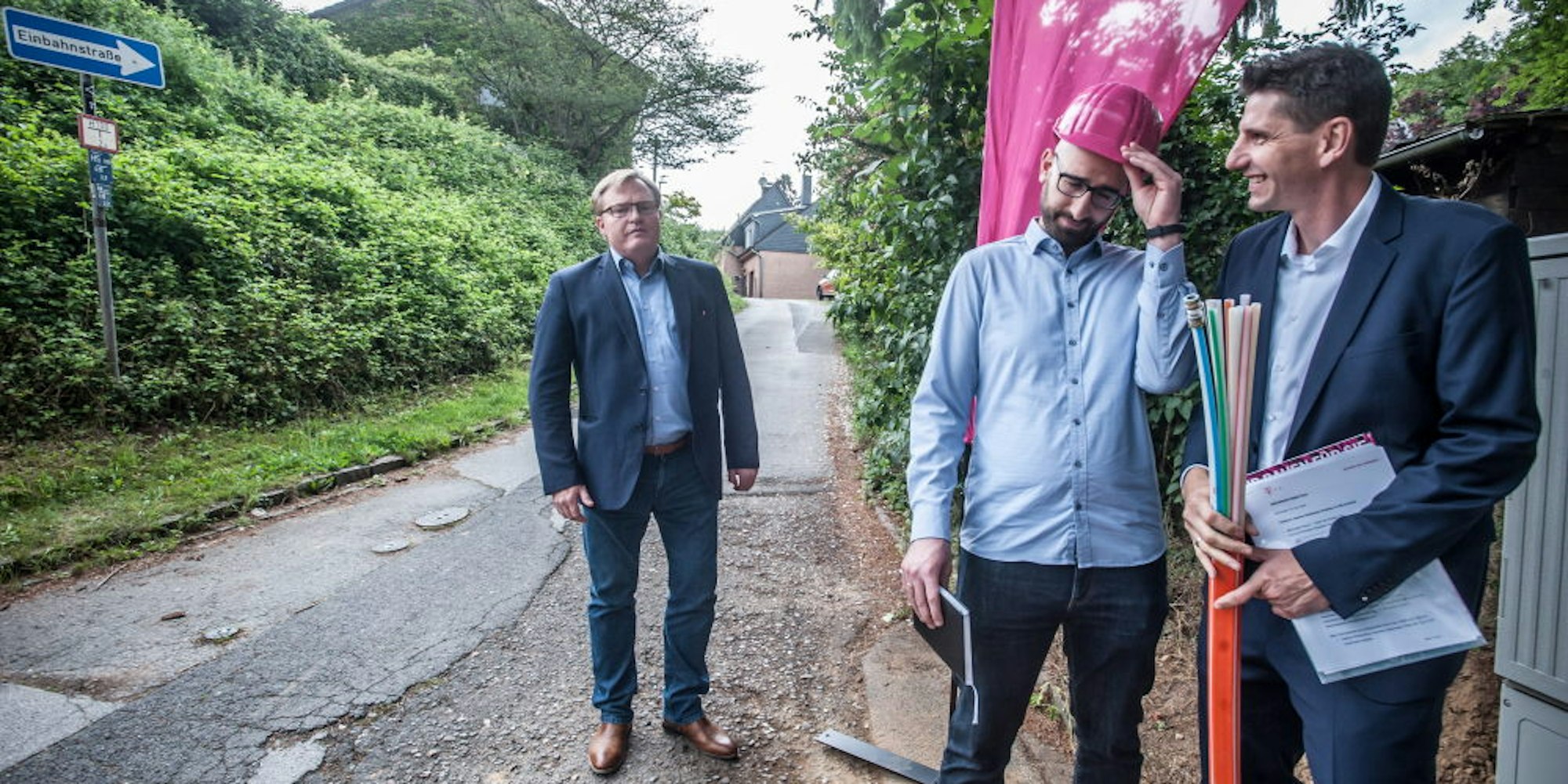 Die Telekom baut das Glasfaser-Netz auch in Großhamberg aus. Von links: Bürgermeister Stefan Caplan, Tarik Küprici und Marco Lohmeier.