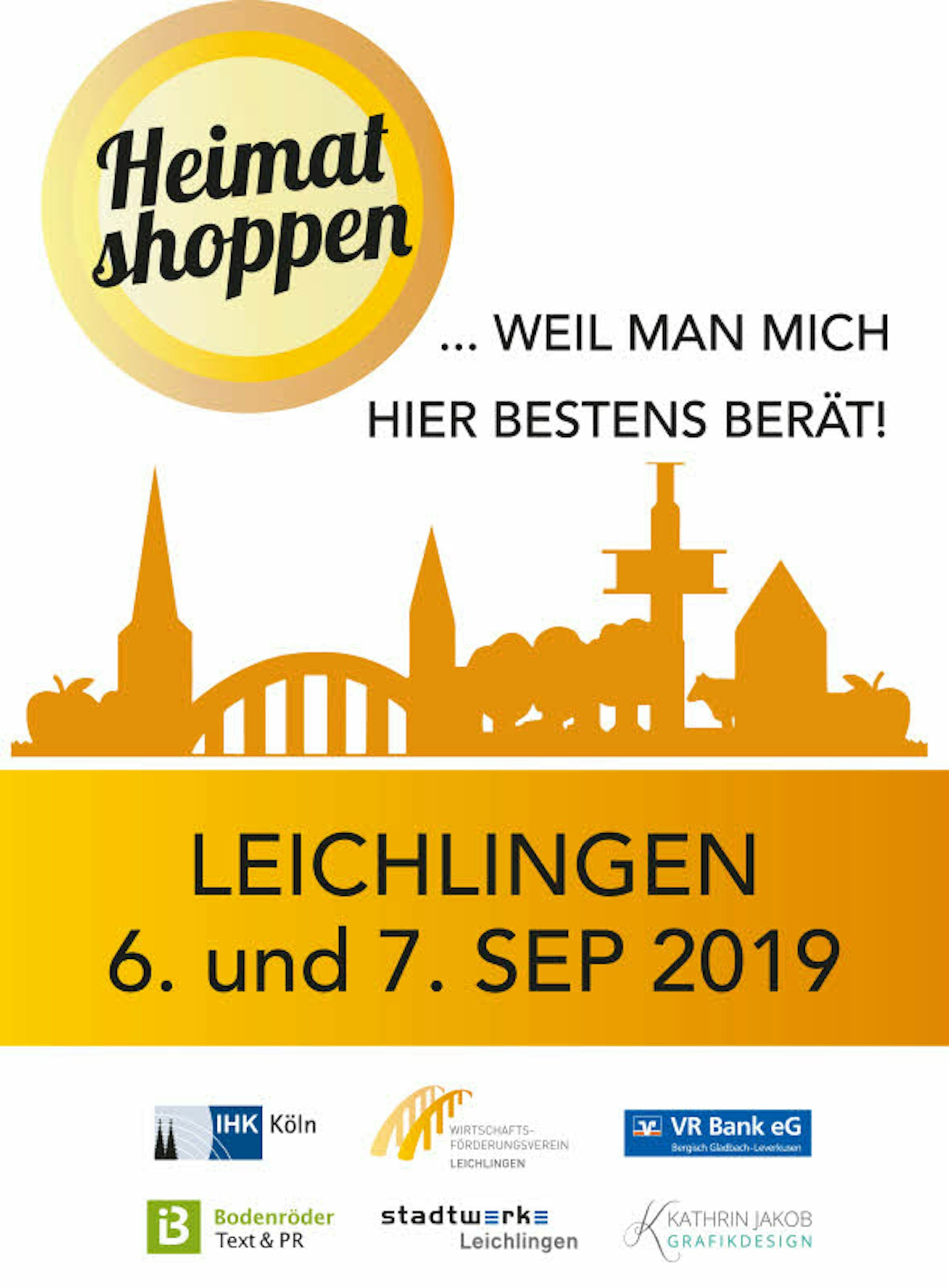 Leichlingen – Mit der Kampagne „Heimat shoppen“ bereiten der Leichlinger Wirtschaftsförderungsverein (Wiv) und die Industrie- und Handelskammer (IHK) den örtlichen Gewerbetreibenden eine Bühne. Die Imagekampagne für den lokalen Einzelhandel ist mehr als ein „langer Sonntag“. Sie dauert zwei Tage: Am 6. und 7. September. Sie fällt gar nicht auf einen Sonntag, sondern auf Freitag und Samstag. Und sie wird von einer breit angelegten Werbeaktion und vielen Rahmenveranstaltungen begleitet.