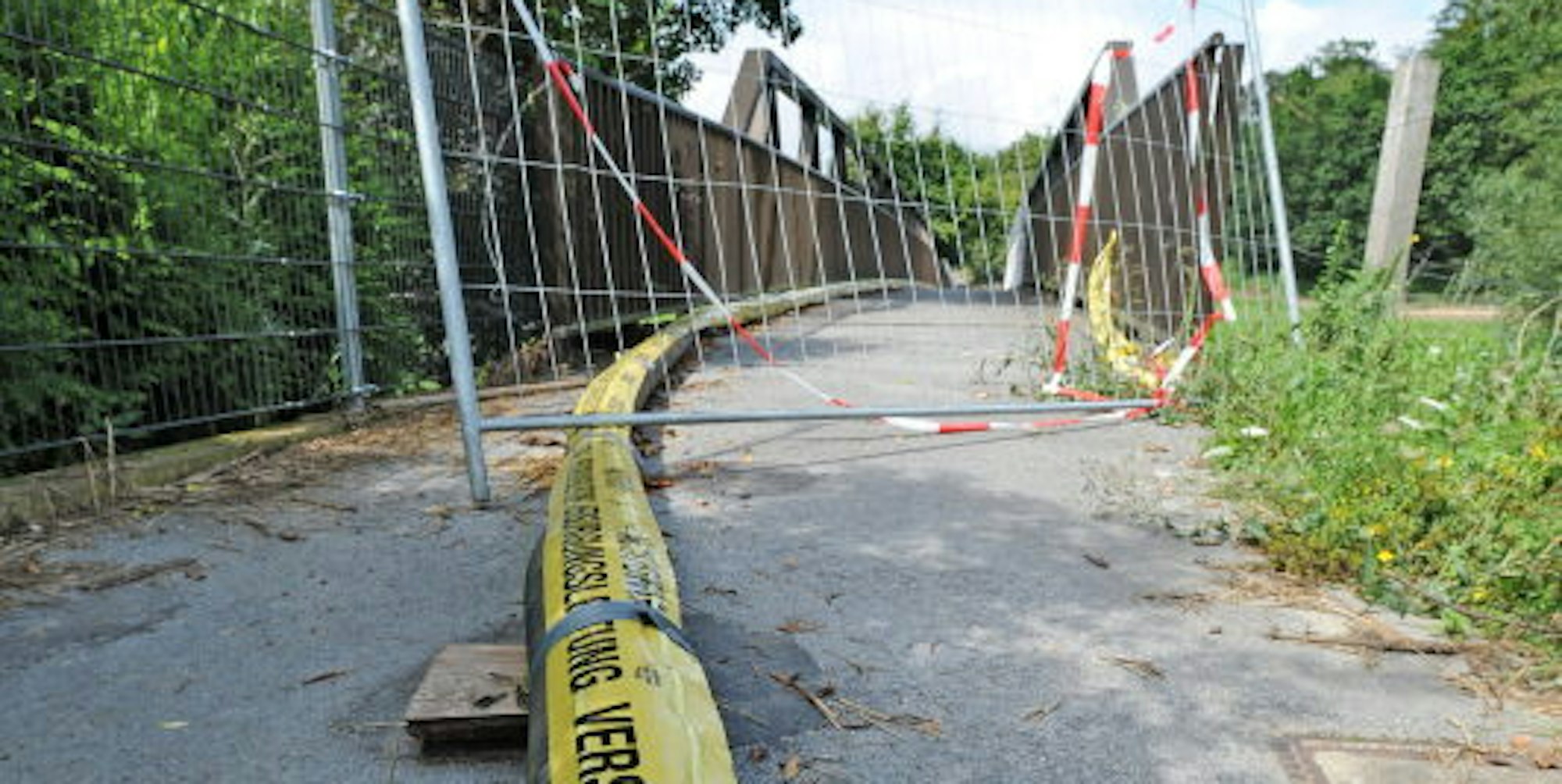 Das Kabel, das provisorisch über die „Juckelbrücke“ gelegt worden ist, wird am Montag verlegt. Dafür muss der Strom abgestellt werden. Auch das zerstörte Geländer wird repariert.