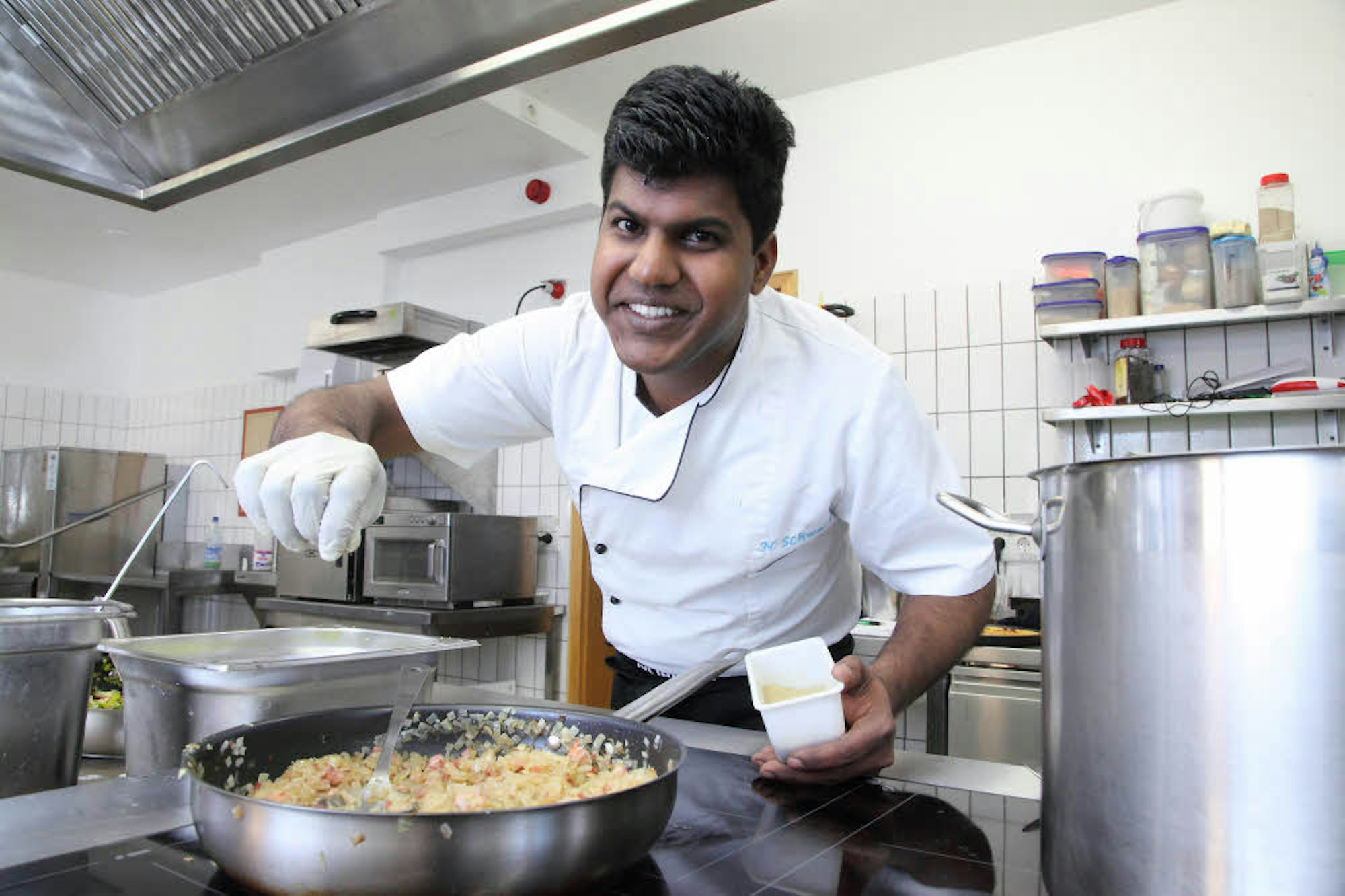 Shinu Kavelis ist ausgebildeter Koch. Zusätzlich zu deutschen Gerichten gibt es immer auch ein Angebot aus seiner indischen Heimat.