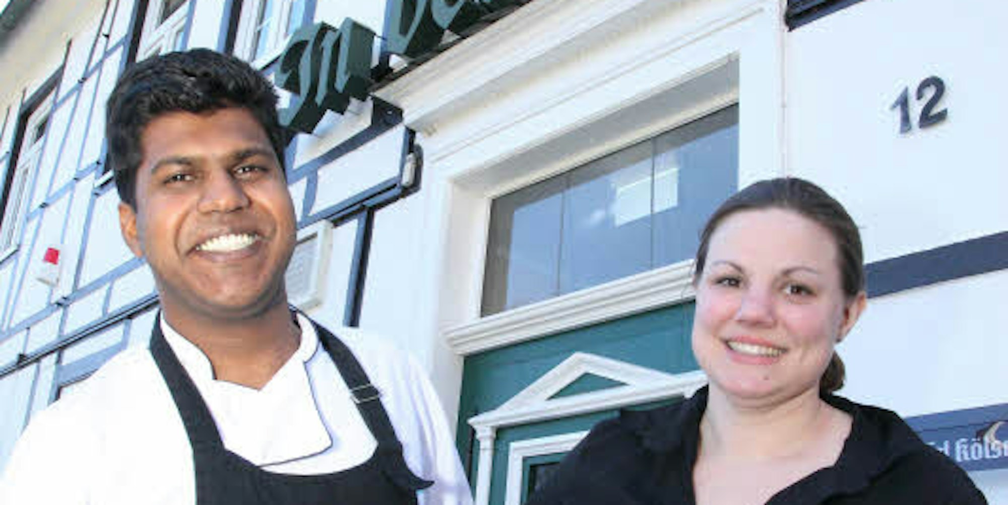 Wir könnten auch ganz anders beginnen, weit entfernt von Kürten-Delling und dem Bergischen. Zum Beispiel in einem Urlaubsresort auf den Malediven. Shinu Kavelil, gebürtig aus der südindischen Provinz Kerala, arbeitete im Fünf-Sterne-Ferien-Resort als Koch. „Koch ist meine Berufung“, sagt er überzeugt. Nadine Schwarz, die im Klosterrestaurant von Maria Laach/Eifel Konditorin gelernt hat und aus der bergischen Stadt Burscheid stammt, war dort in der Patisserie tätig, zuständig für feine Kuchen.
