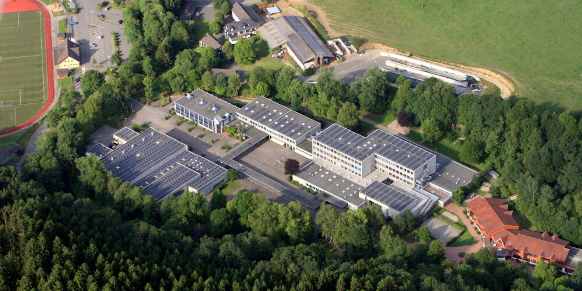 Die Gesamtschule mit Sülztalhalle (links vorne) heute.