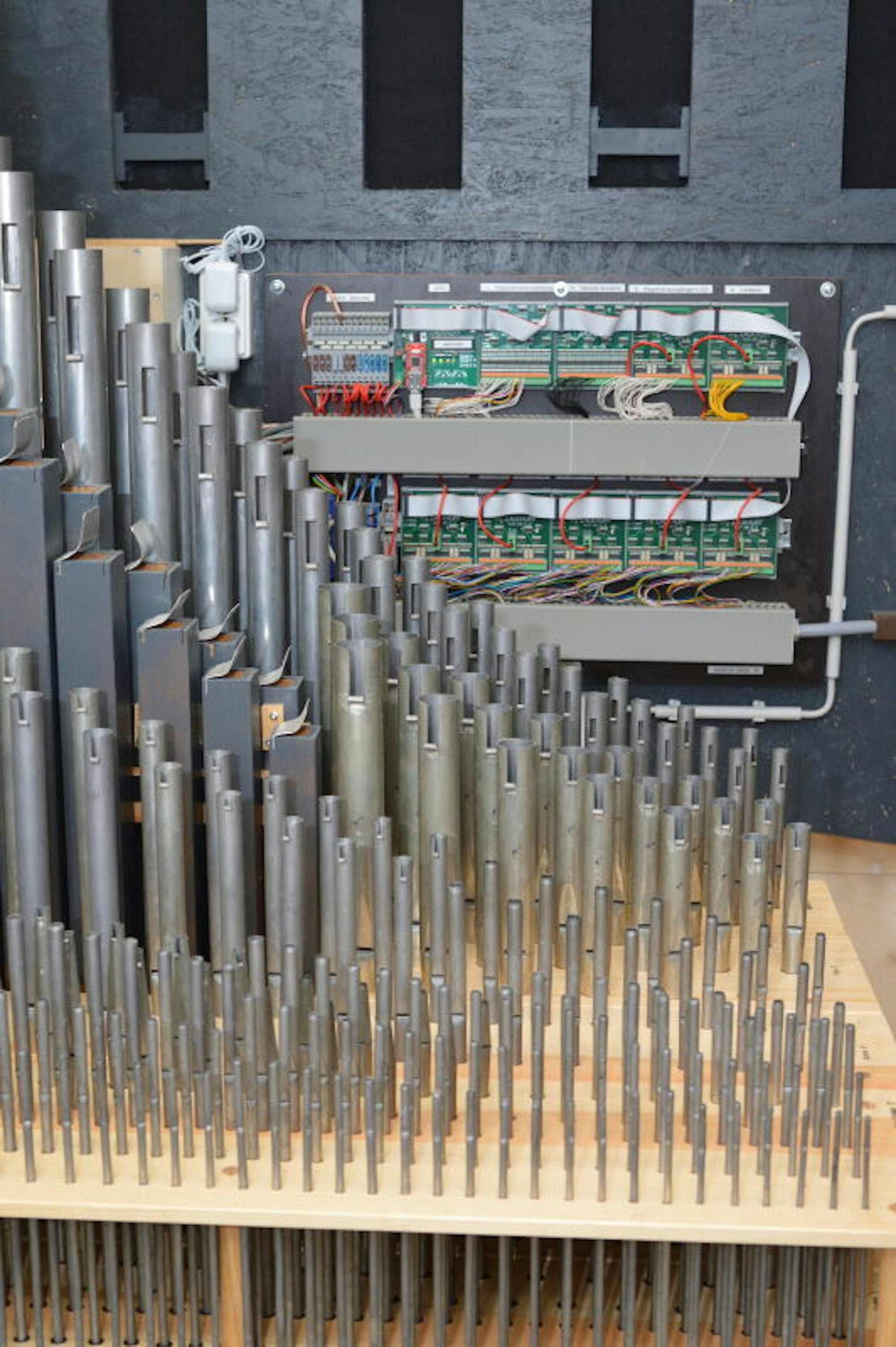 Die sensible Technik der Orgel, die die verschiedenen Register und Pfeifen steuert, ist im Hinterraum des Instruments verbaut.