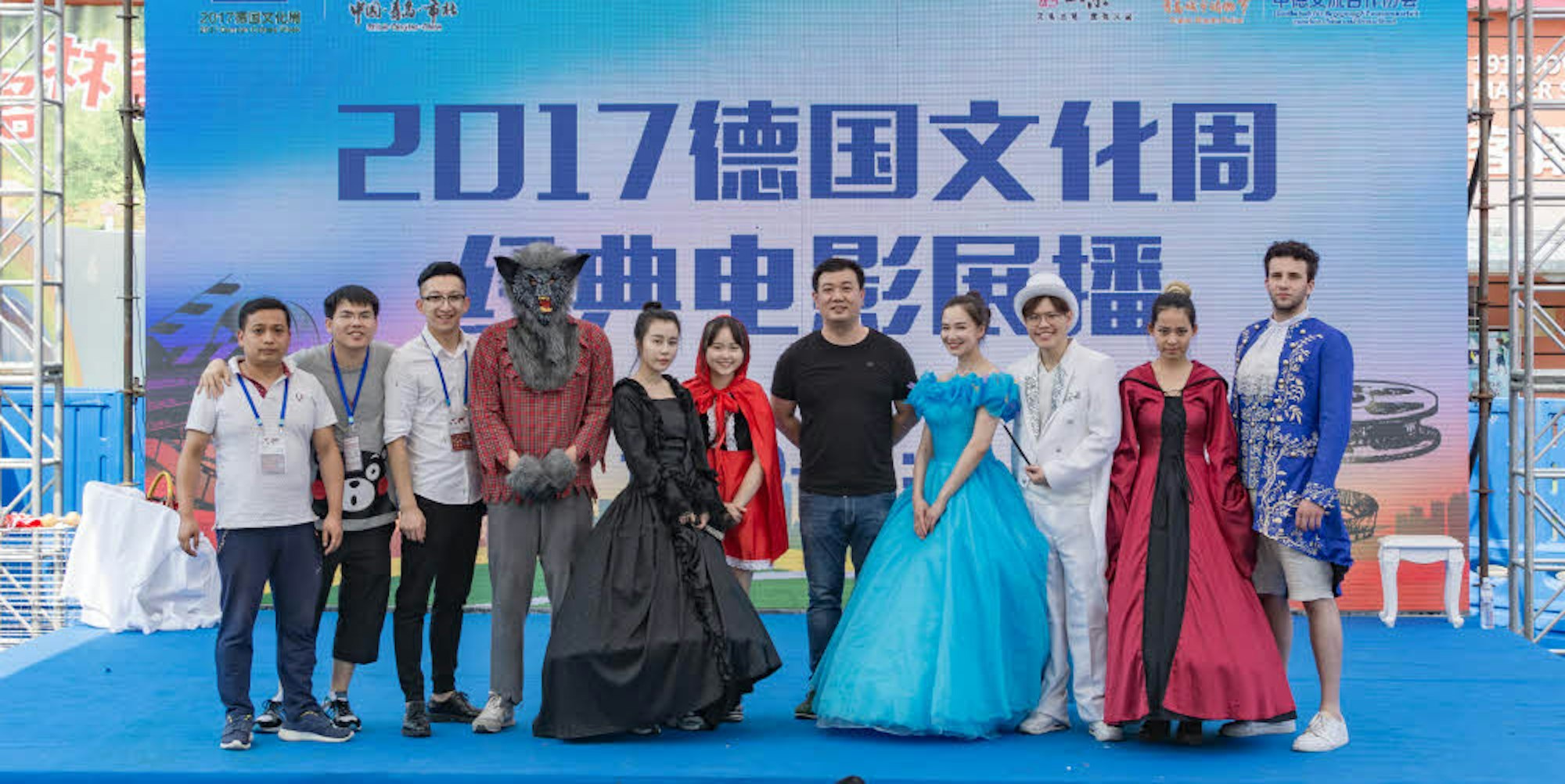 Julin Julia Täubner (vierte von rechts) spielte in China in einem Aschenputtel-Ensemble mit.