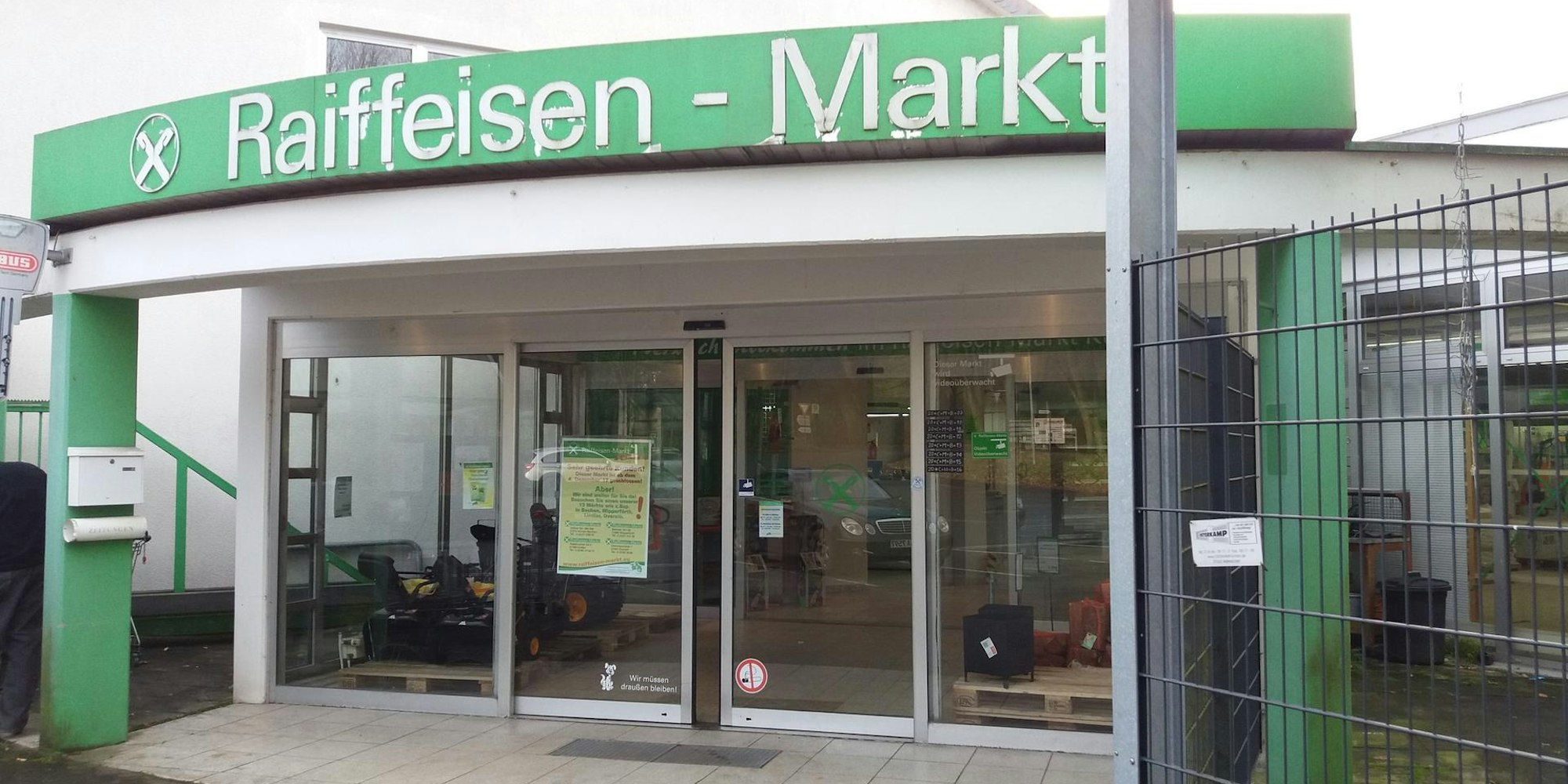Der Raiffeisenmarkt in Kürten-Hungenbach hat geschlossen. Für das Gelände sucht die Volksbank Berg einen Nachmieter.