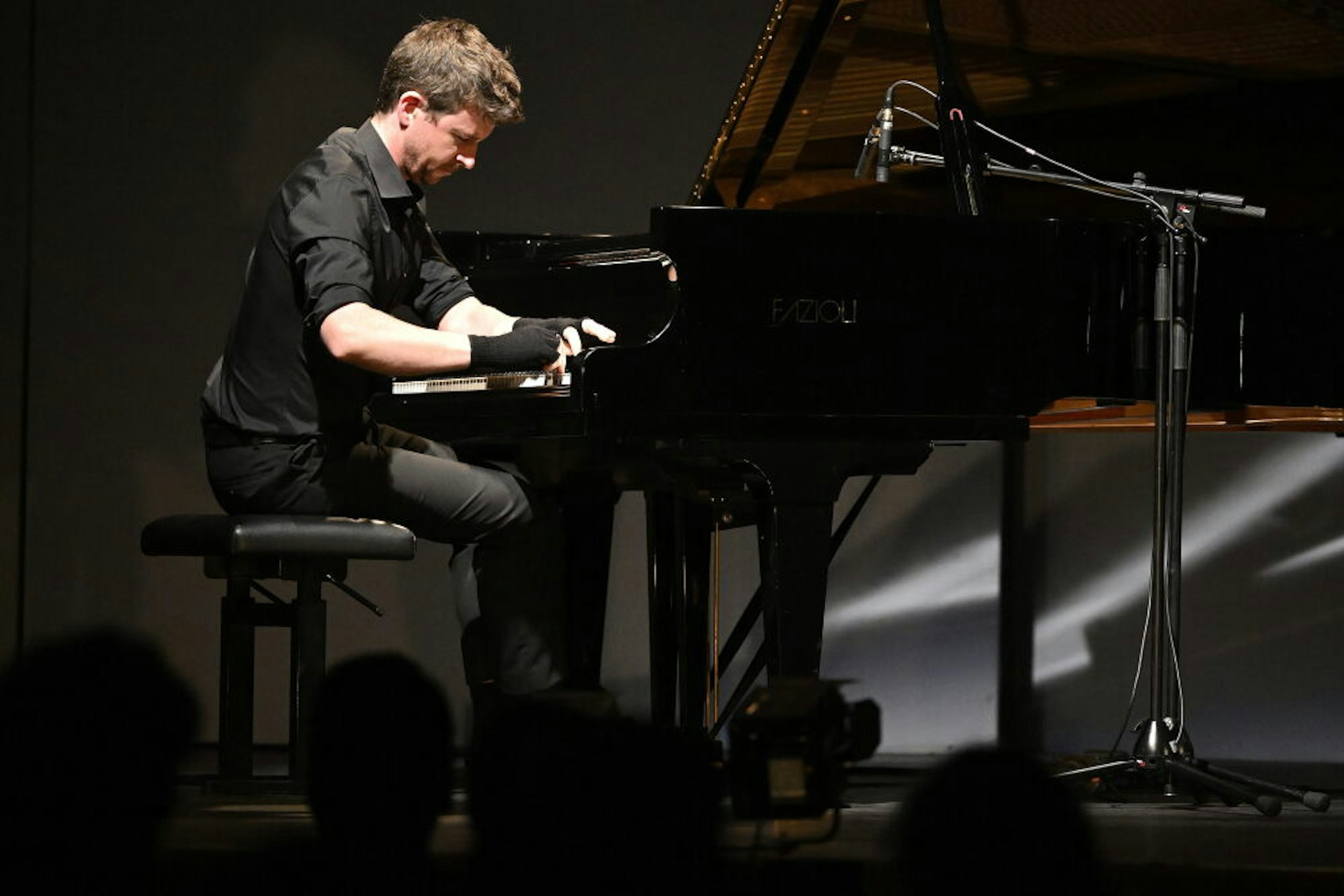 So auch Gabriel Jones, der das Klavierstück X aus dem Jahre 1954, in der Überarbeitung von 1961, spielte. In dem Stück werden gegensätzliche Materialien verarbeitet. Dem extremen Tempo steht ein langes Ausklingenlassen gegenüber, hohen Klängen ganz tiefe oder laute extrem leisen. Der Kontrast ist prägend, und Jones vermag diesen in besonderer Wiese zu präsentieren. Eine Besonderheit sind die langen „gefärbten“ Pausen. Der Pianist hebt die Dämpfer einiger Tasten, spielt dann kurz andere Töne und in der anschließenden Pause klingen dann die mitschwingenden Saiten des Flügels, ehe diese im Nichts entschwinden. Nach Herbert Henck, einem ausgewiesenen Spezialisten für Neue Musik, geht es Stockhausen darum, Extreme in Verbindung treten zu lassen.