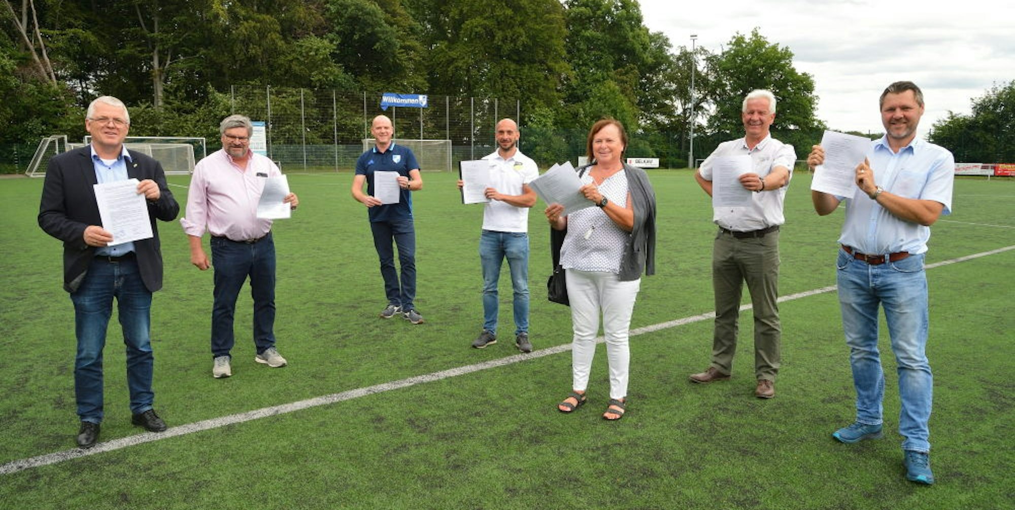 Kürten – Alles neu bei der Sportförderung: Die fünf Sportplatz-Vereine in Kürten, Olpe, Dürscheid, Biesfeld und Bechen haben neue Nutzungsverträge für die Sportanlagen mit der Gemeinde abgeschlossen. Auf dem Sportplatz in Biesfeld unterschrieben Dirk Rappenhöner (Union Biesfeld), Sebastian Biesenbach (DJK Montania Kürten), Joachim Hankus (DJK Dürscheid), Marc Pütz (SV Bechen) und Bert Schützinger (RW Olpe) die Dokumente.