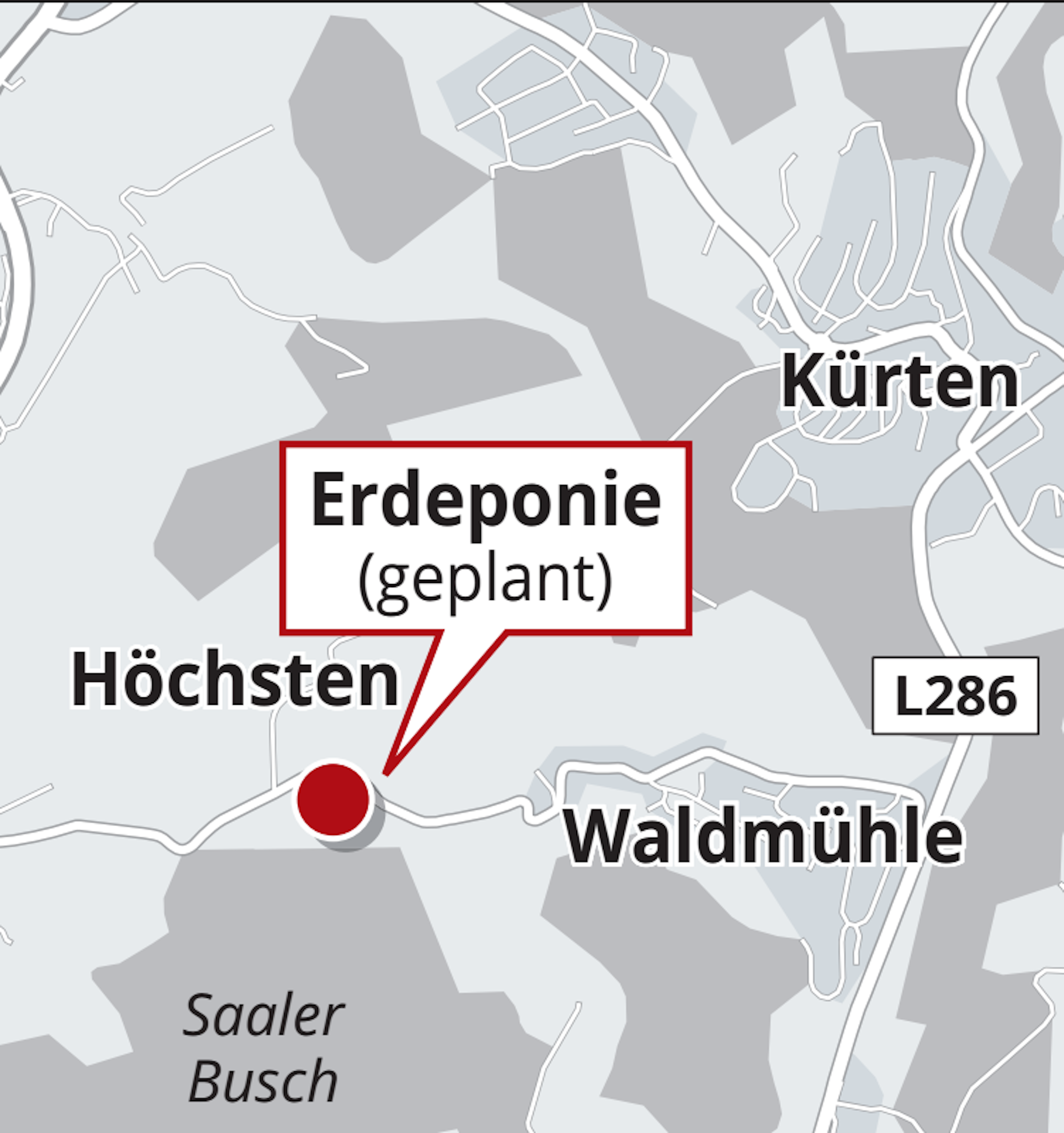 Der Abfallwirtschaftsverband plant in Höchsten mit einer öffentlichen Erddeponie. Eine in diesem volllaufende Erddeponie im Kürtener Herrscherthal war nur für die Teilhaber der Betreibergesellschaft offen, überwiegend waren das Tiefbauunternehmen der Region. Die heimischen Tiefbauer brauchten einen Kipp-Platz in der Nähe, meinte die Geschäftsführerin, Höchsten wäre die einzige Erddeponie in Rhein-Berg.