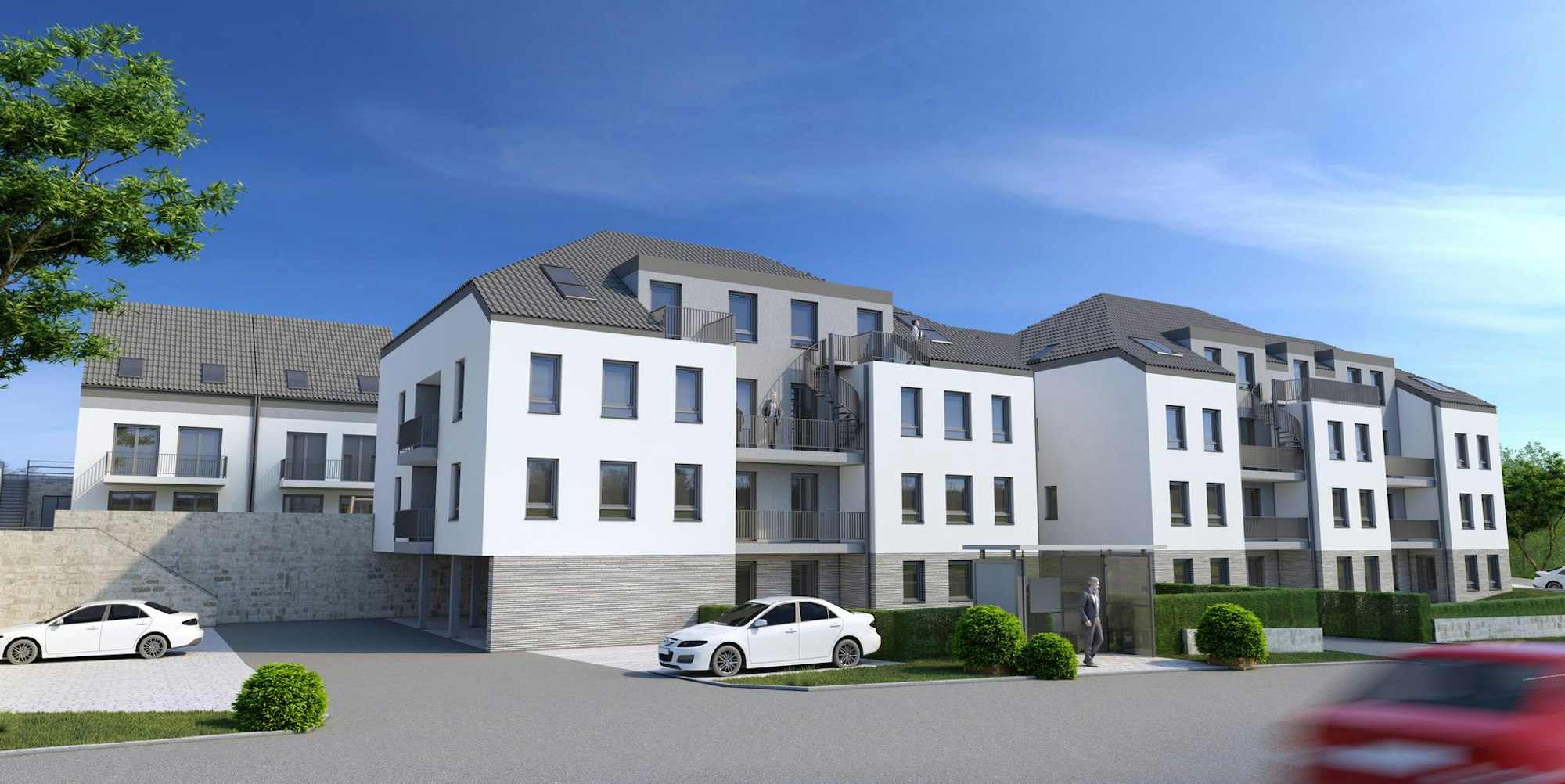Alle Wohneinheiten verfügen über Balkone oder Terrassen. Auch ein zentraler Spielplatz, ein barrierefreies Wegenetz und eine ausreichende Zahl an Stellplätzen sind vorgesehen. Die Wohnanlage „Zuhause in Dürscheid“ soll voraussichtlich von Oktober 2021 an Familien, Paaren und Singles ein neues Zuhause bieten.