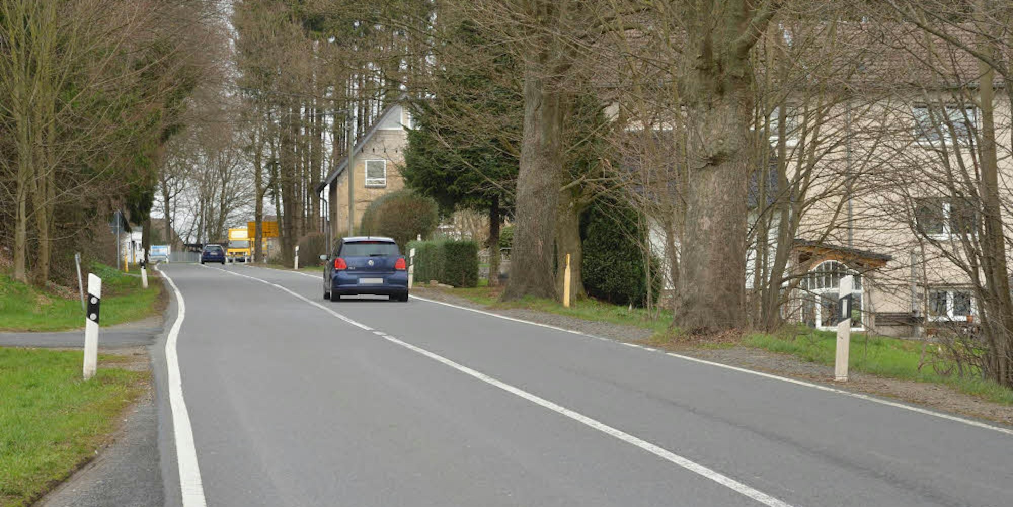 Breite Fahrbahnen für Autos, aber keine Sicherheitsstreifen für Radler – wie hier bei Kürten-Schanze.