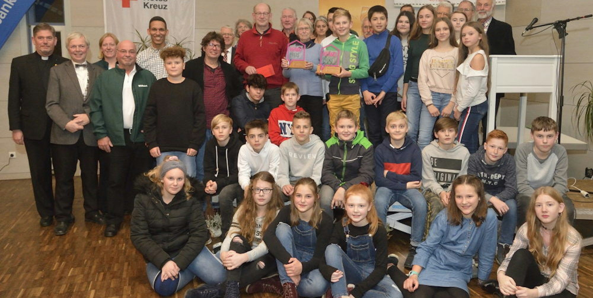 Auch der Jubel der Klasse 7e der Gesamtschule Kürten war groß. Die ganze Klasse hatte währende der gesamten zweieinhalbstündigen Veranstaltung ausgeharrt, um zu erfahren, dass ihr Projekt den zweiten Preis erhielt. Die Schulklasse der letztjährigen 6e bekam 1500 Euro für den Videobeitrag: „Sehnsuchtsort Heimat (Kürten).“ Unterstützt von ihrem Klassenlehrer Timon Wittneben und dem Medientrainer Jens Bunde „haben die Schülerinnen und Schüler einen beeindruckenden Film gedreht“, der sich auf verschiedene Art und Weise dem Thema „Heimat“ annähert und im Internet zu sehen ist.