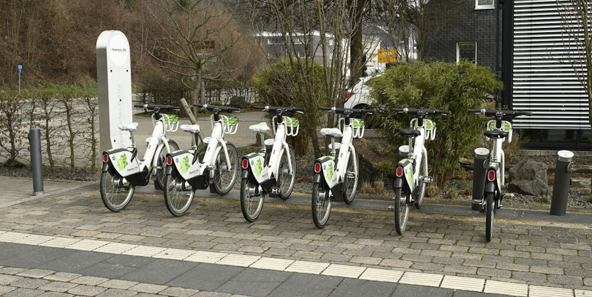Die Ausleihstation für E-Bikes am Karlheinz-Stockhausen-Platz in Kürten-Mitte.